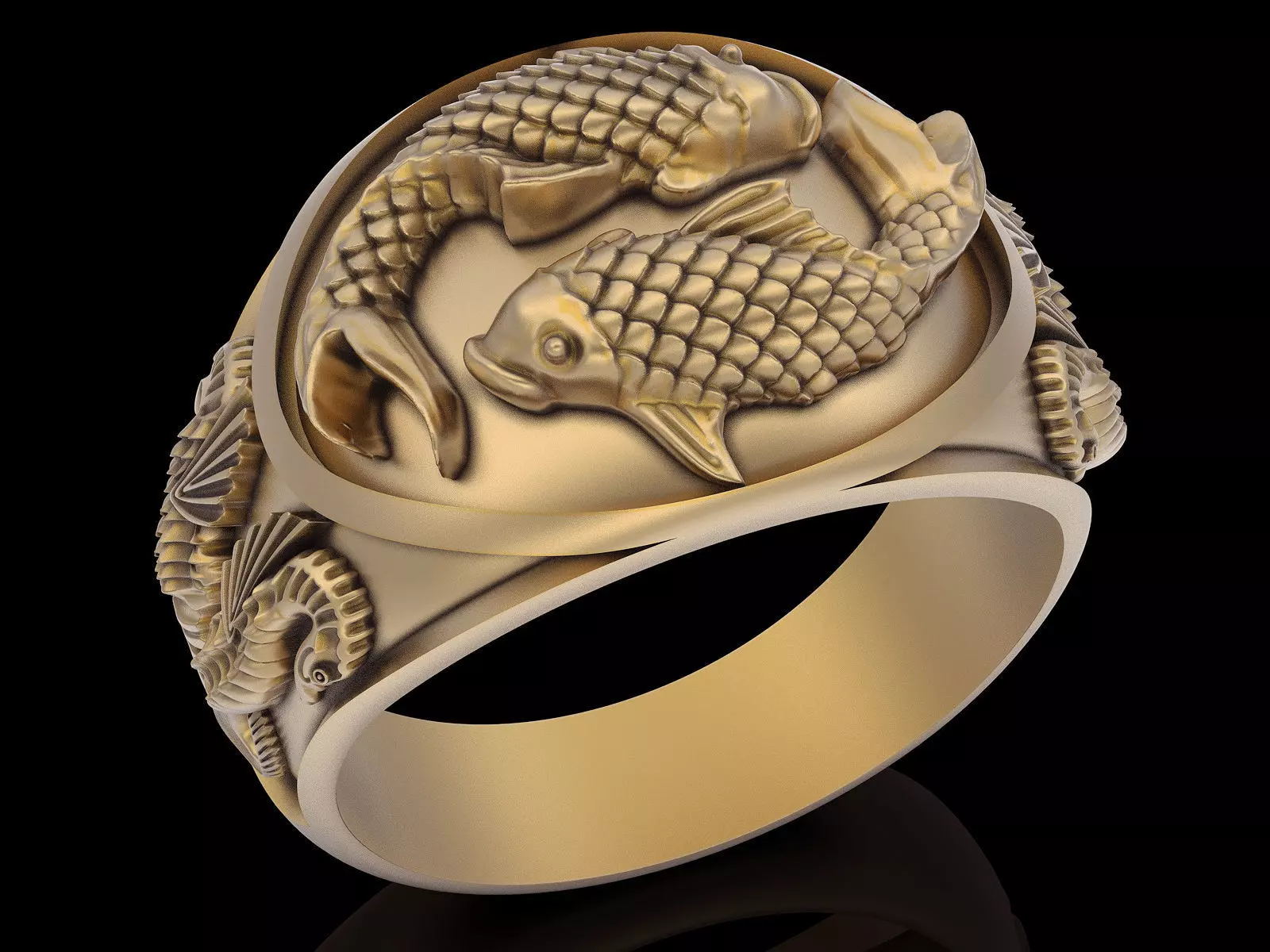 Fish seahorse ring silver gold printable jewelry 3D model 3D print model