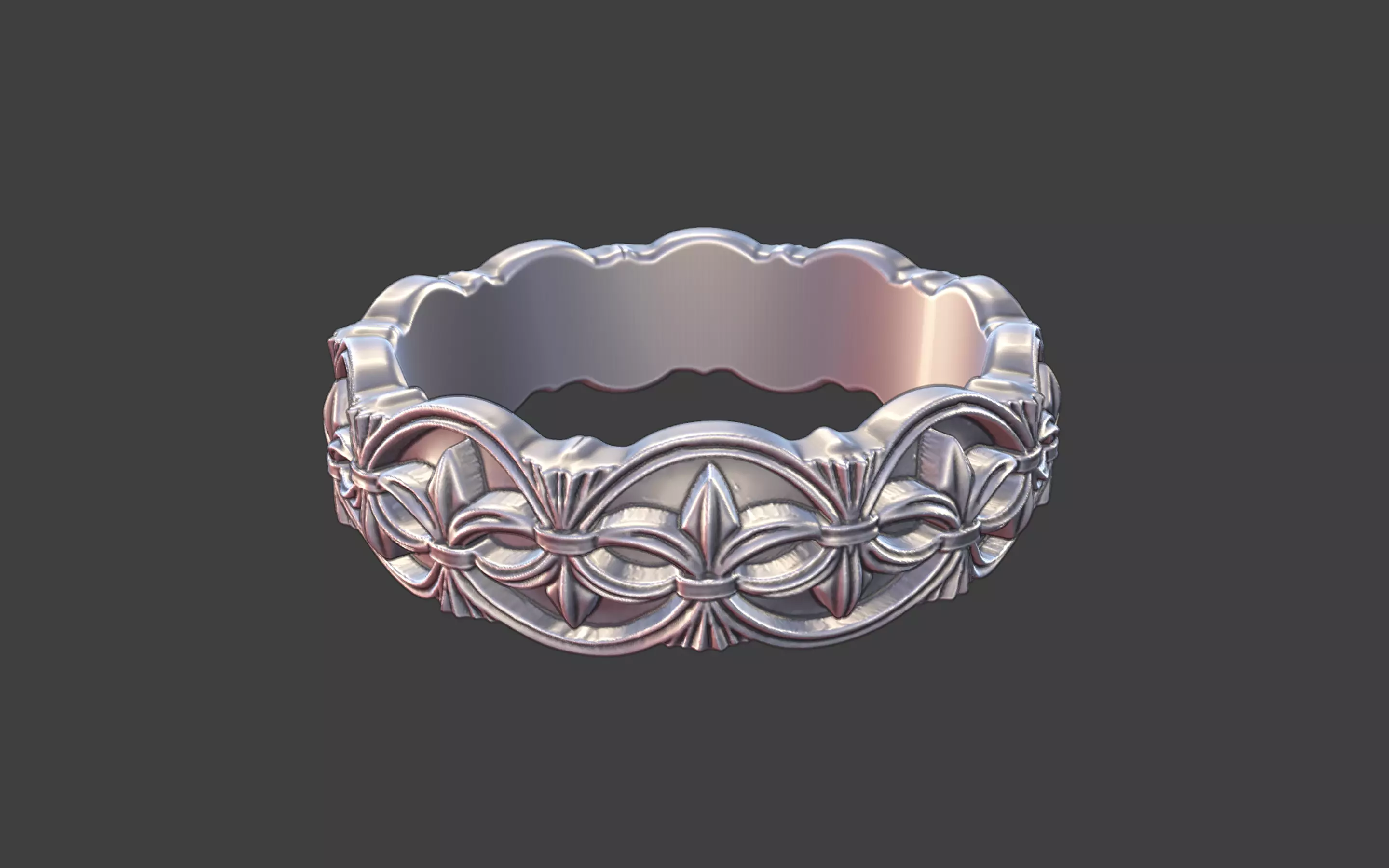 Fleur-de-Lis Silver Vintage Band Ring – 3D Model for Jewelry Production