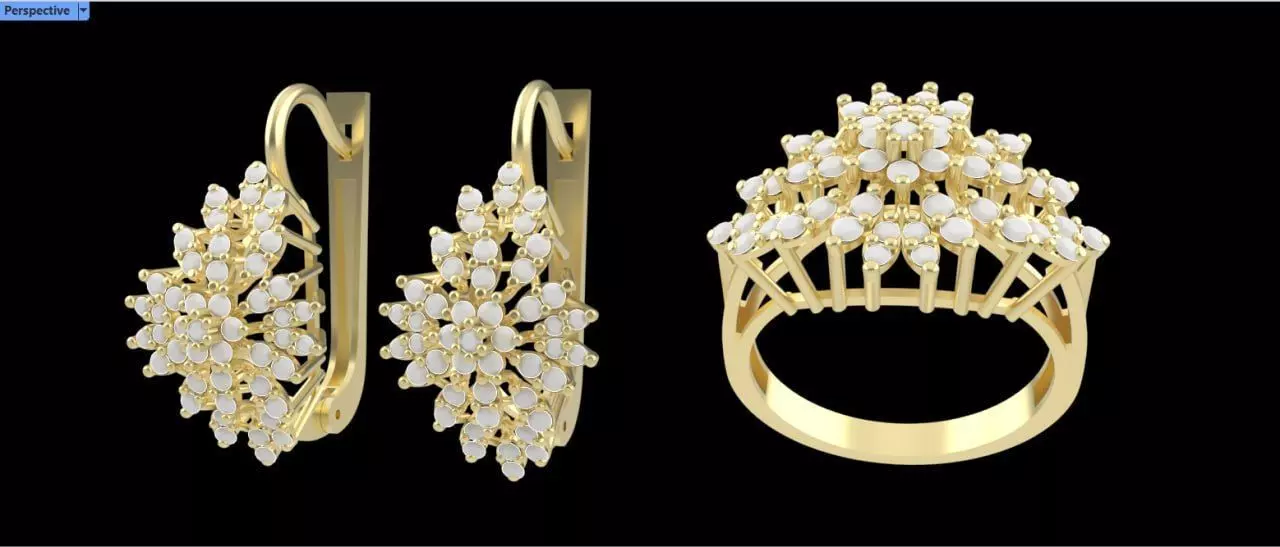 Both the ring and earrings are carefully modeled with clean geometry, accurate proportions, and well-defined stone seats, making this set suitable for professional workflows such as jewelry rendering, design presentations, and manufacturing preparation.