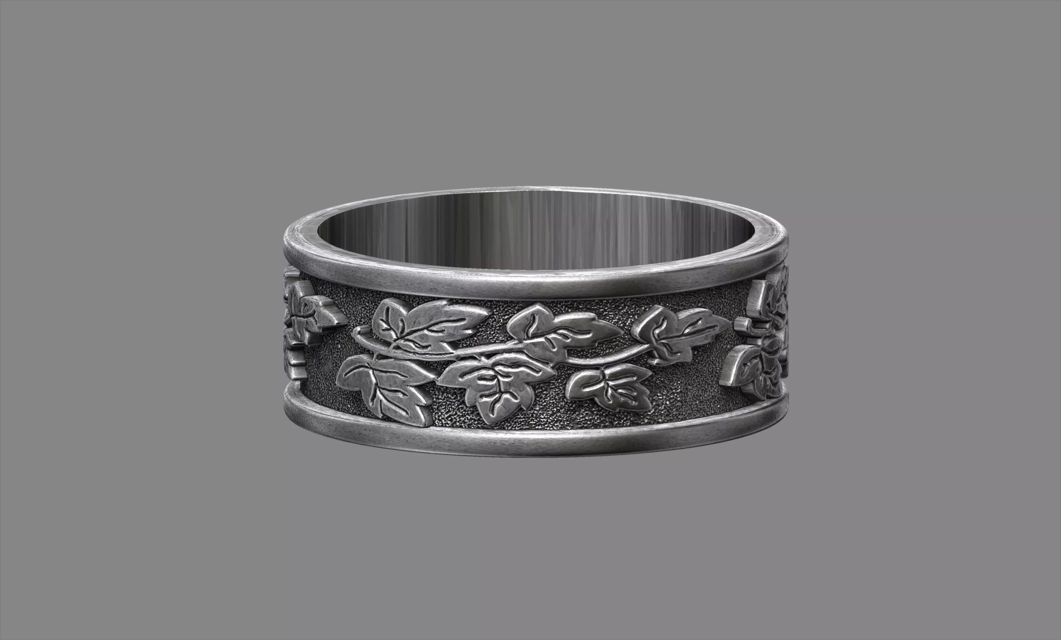 A timeless, nature-inspired wedding band featuring intricately engraved oak leaves flowing around the ring. Symbolising strength, endurance, and lasting commitment, the detailed floral leaf design offers a balance of elegance and organic beauty. Designed for high-quality 3D printing and suitable for metal casting, this ring is ideal for wedding bands, promise rings, or refined botanical jewellery projects.