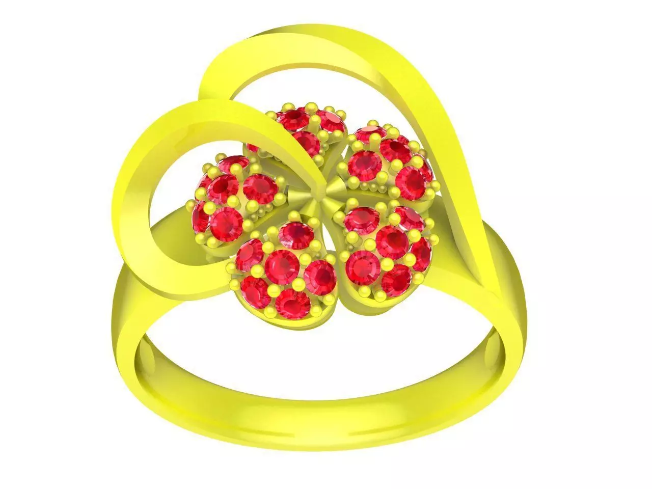 This 3D jewelry model features an elegant floral cluster ring design, inspired by blooming flowers and feminine elegance. The centerpiece is composed of multiple round gemstones arranged in a symmetrical flower pattern, creating a vibrant and luxurious appearance.