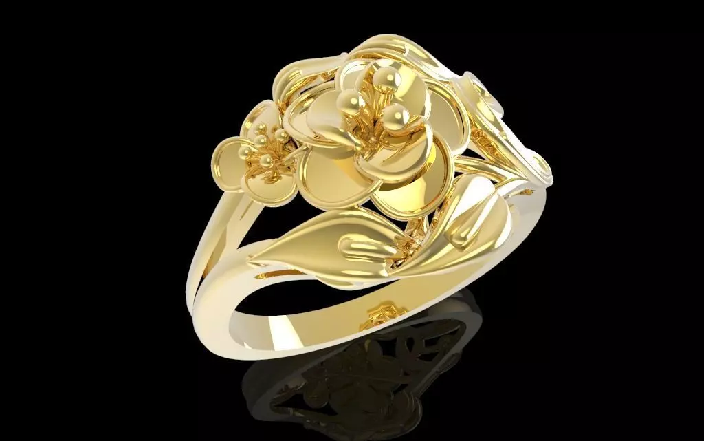 The ring is professionally modeled for fine jewelry manufacturing, with carefully controlled thickness and smooth transitions between sculpted elements to ensure durability and wearer comfort. The floral structure is seamlessly integrated into the band, providing strong structural balance while preserving delicate surface details essential for high-quality casting and finishing.