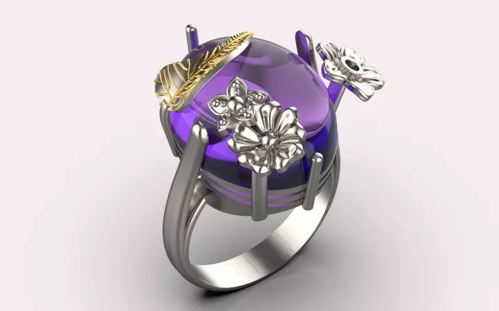 fashion oval ring flower jewelry gold 3D print model