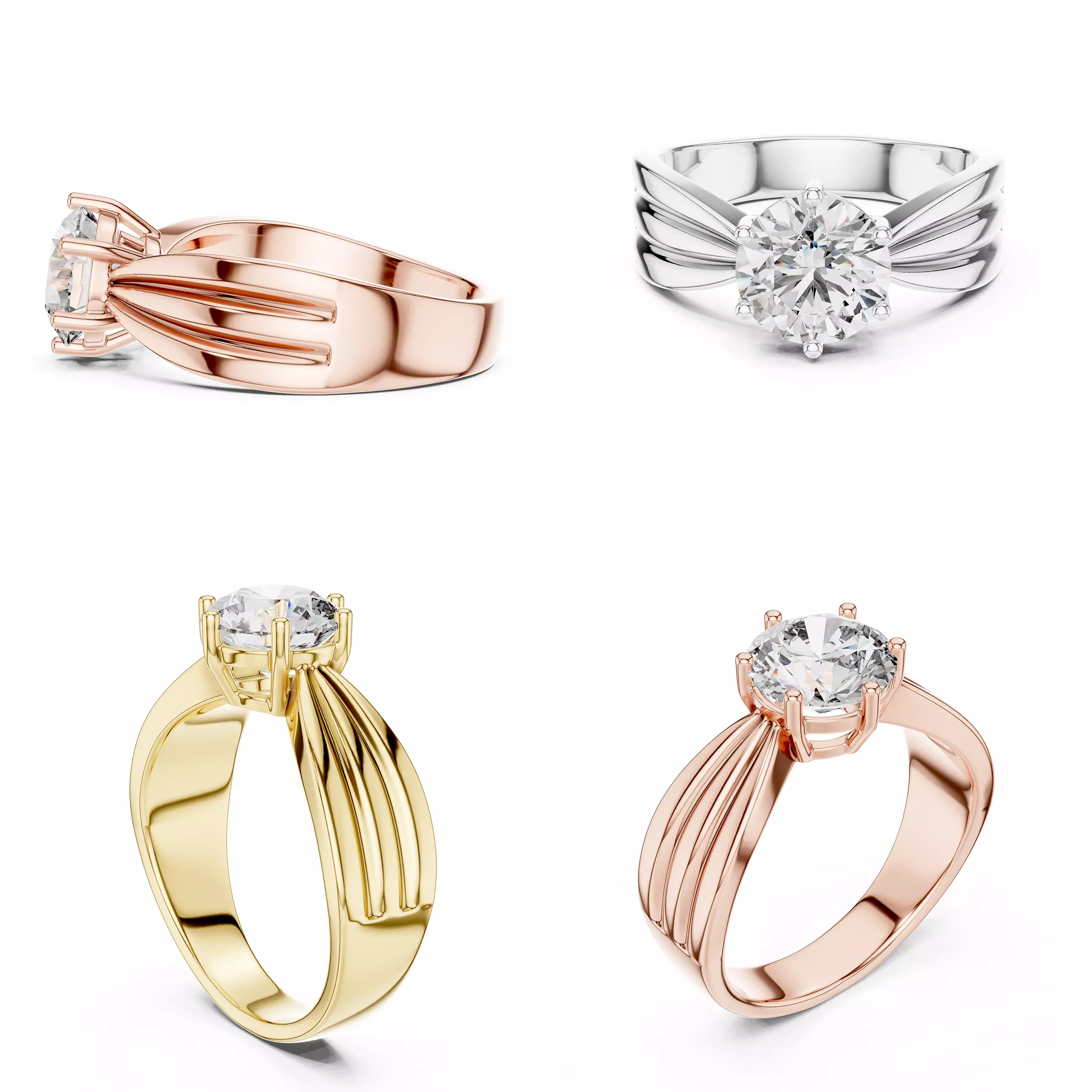 The 3D model is fully editable, allowing customization of ring size, stone dimensions, and metal types such as yellow gold, white gold, or rose gold. Ideal for engagement rings, premium ladies collections, and modern bridal jewellery lines.