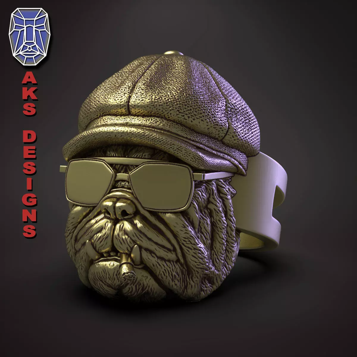 animal Ring jewelry Gangster bulldog version 2 3D print model