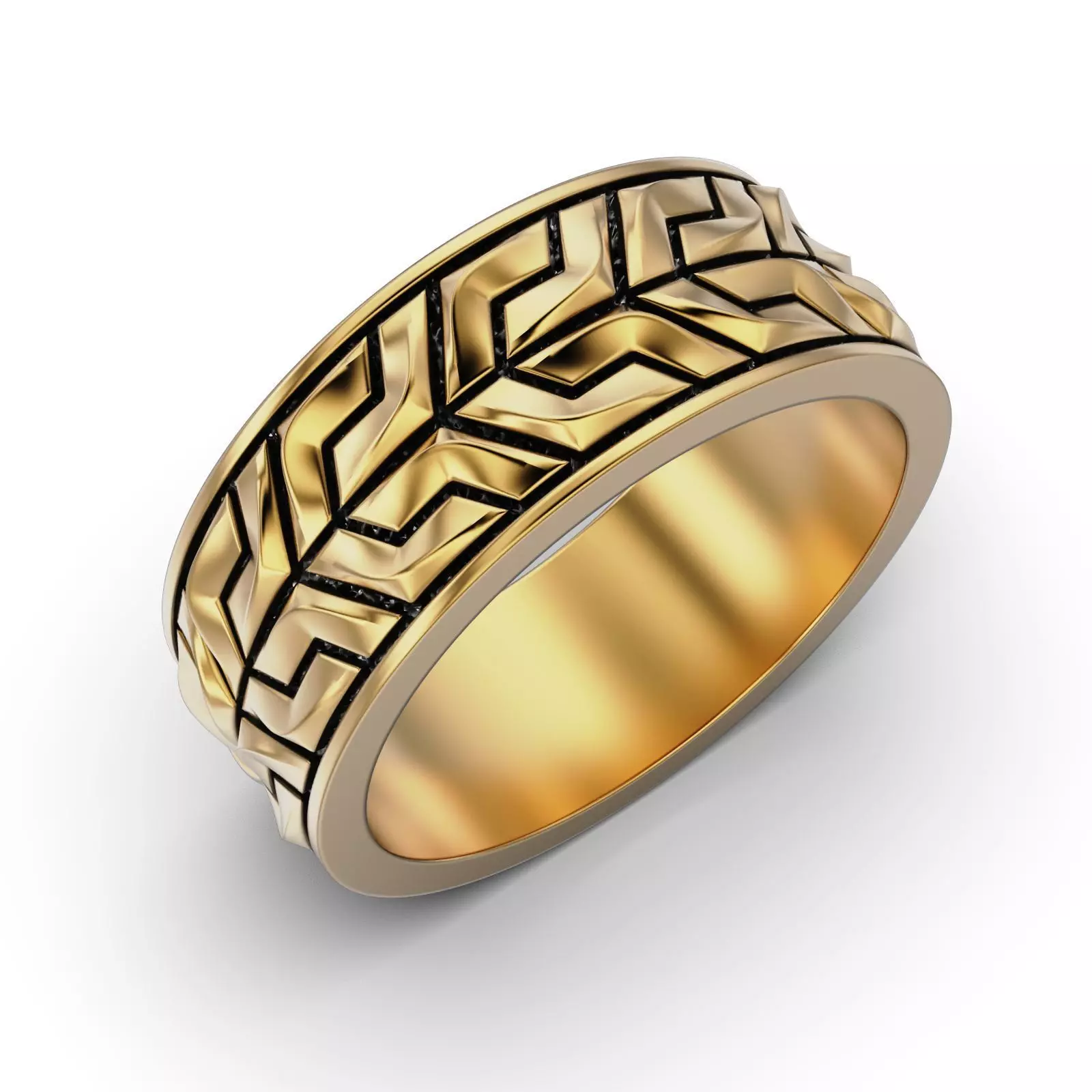 A detailed 3D model of a geometric chevron-patterned ring, ideal for 3D printing and jewelry crafting. This model features a modern and elegant design with intricate patterns perfect for both men’s and women’s fashion. The ring is optimized for gold, silver, or other metal casting. Compatible with various 3D printing technologies and software. Ideal for professional jewelers or hobbyists seeking a unique, contemporary design.