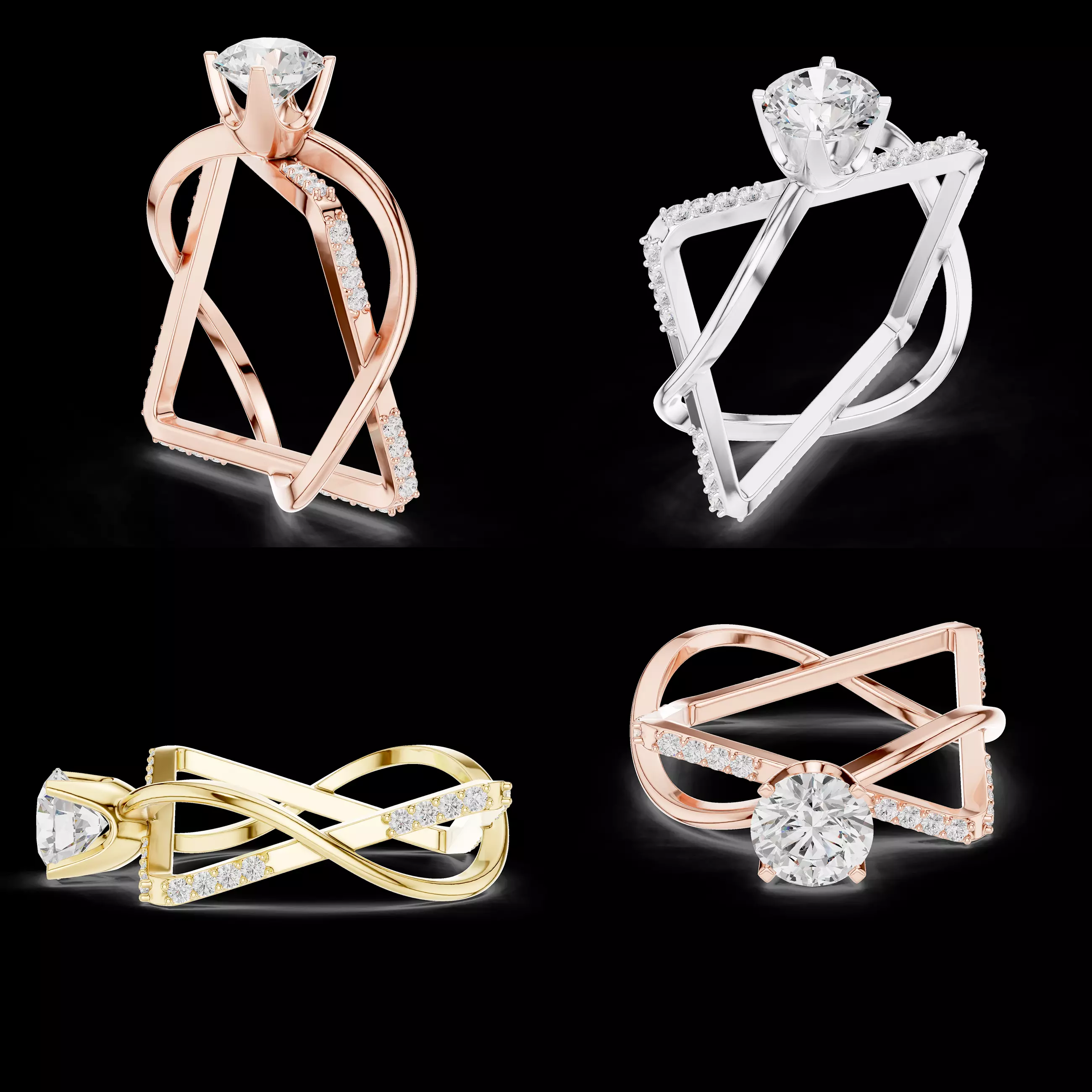 Ring Type: Statement geometric ringDesign Style: Crossover angular frameCenter Setting: Elevated solitaire supportBand Structure: Open architectural geometrySurface Finish: High polishCAD Scale: Real jewellery scaleModel Status: Casting ready
