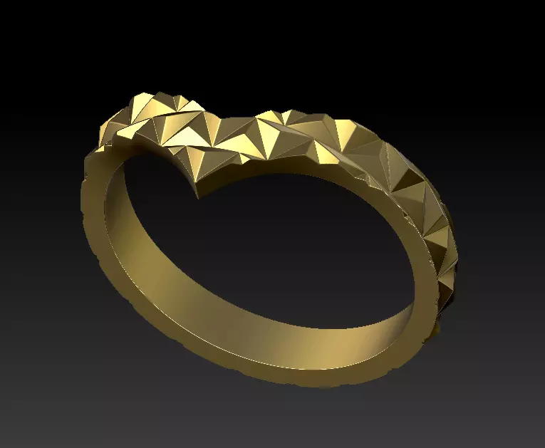 This ring features a modern geometric faceted design with clean planes and sharp transitions, creating a strong visual presence while remaining refined and wearable.