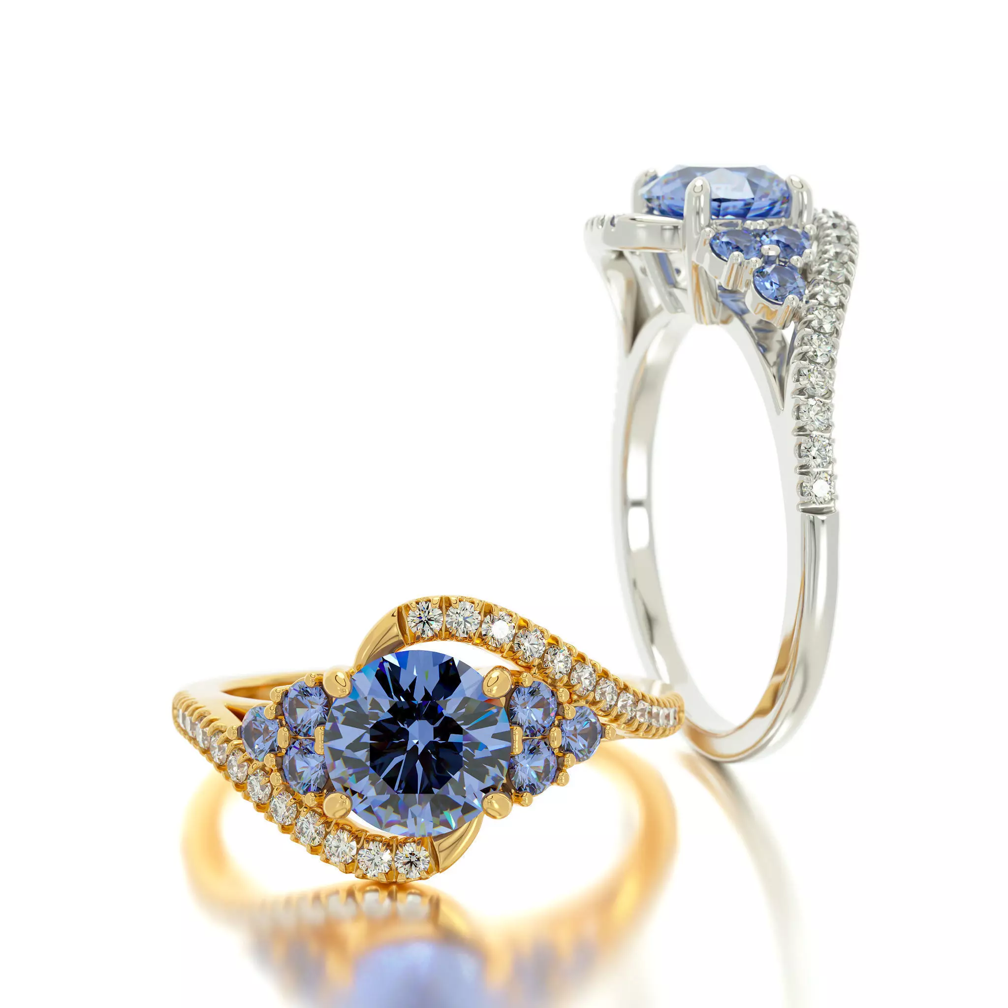 center stone -6.5mm round sapphire\diamond