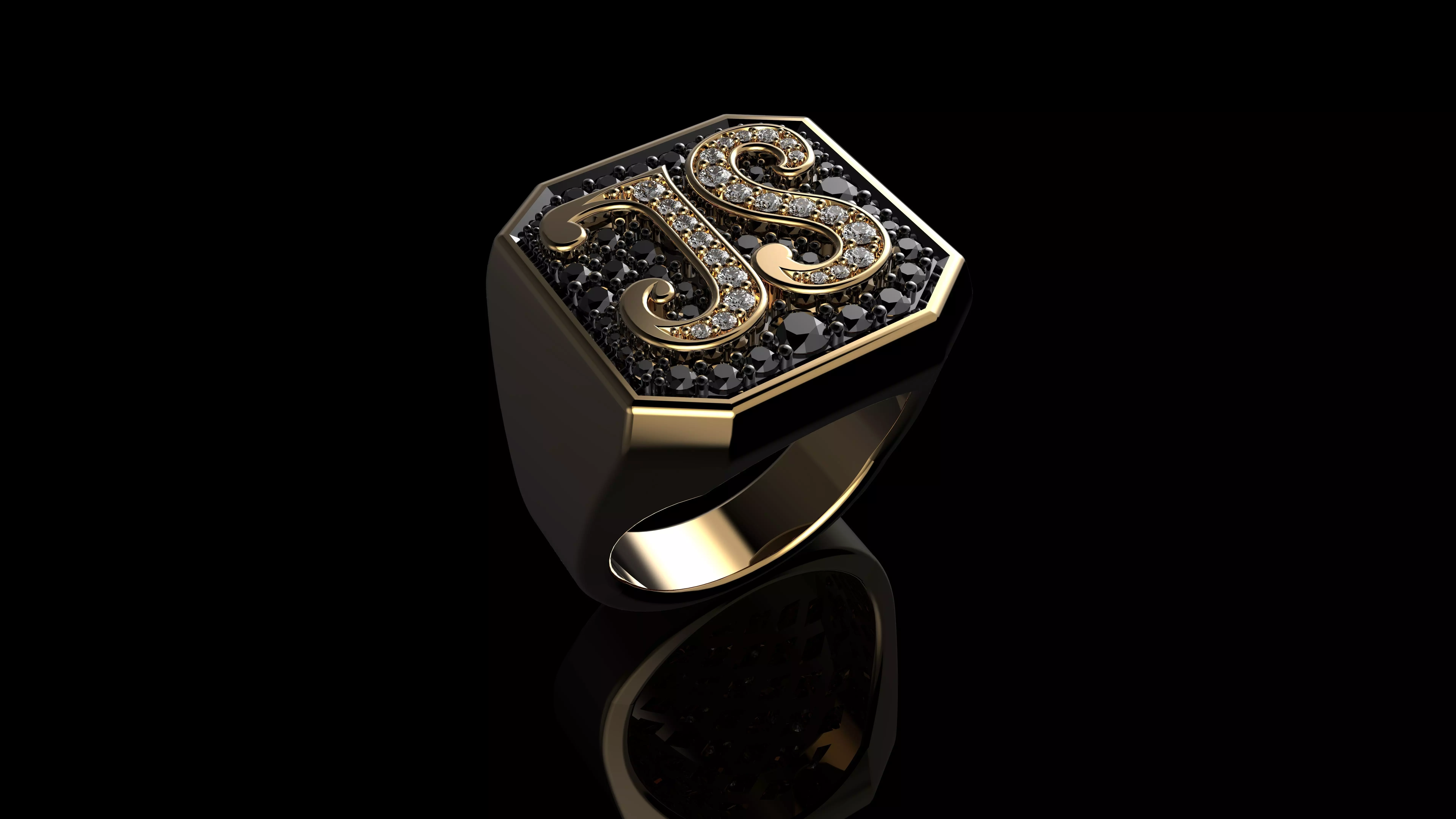 Gold Round Cut Black Diamond Mens Ring 3D print model