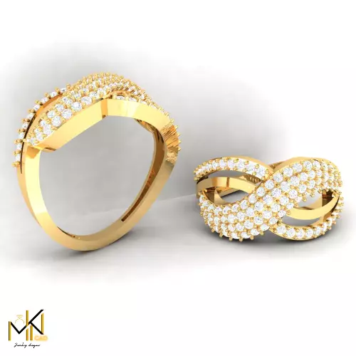 This gold infinity ring 3D model features a timeless intertwined design fully adorned with pavé-set round brilliant diamonds. Crafted for jewelry CAD designers, visual artists, and manufacturers, the model is ideal for photorealistic rendering, animations, and 3D printing.