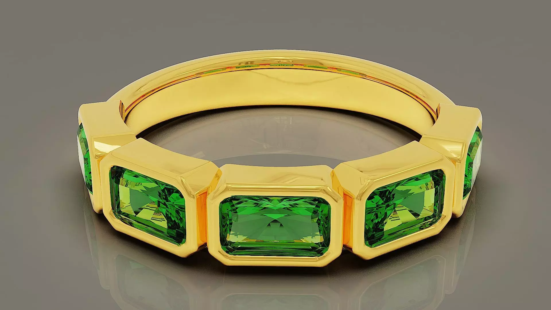 Experience the luxurious sparkle of radiant shape diamonds bezel set half eternity band ring. With exquisite bezel set diamonds in a stunning half eternity band, this ring is the perfect combination of elegance and sophistication. Elevate your style and make a statement with this striking piece.Ring rail size is 55 (EU) with diameter of 17.5 mm. Final weight of ring for all precious metals is indicated in pictures. Dimensions of radiant shape stones are also exsit in pictures. In order to have clearer idea of final product with various materials, several materials such as rose gold, yellowgold, white gold, ruby, emerald, sapphire and diamond were utilized in rendering process. I invite you to visit other works in my gallery.