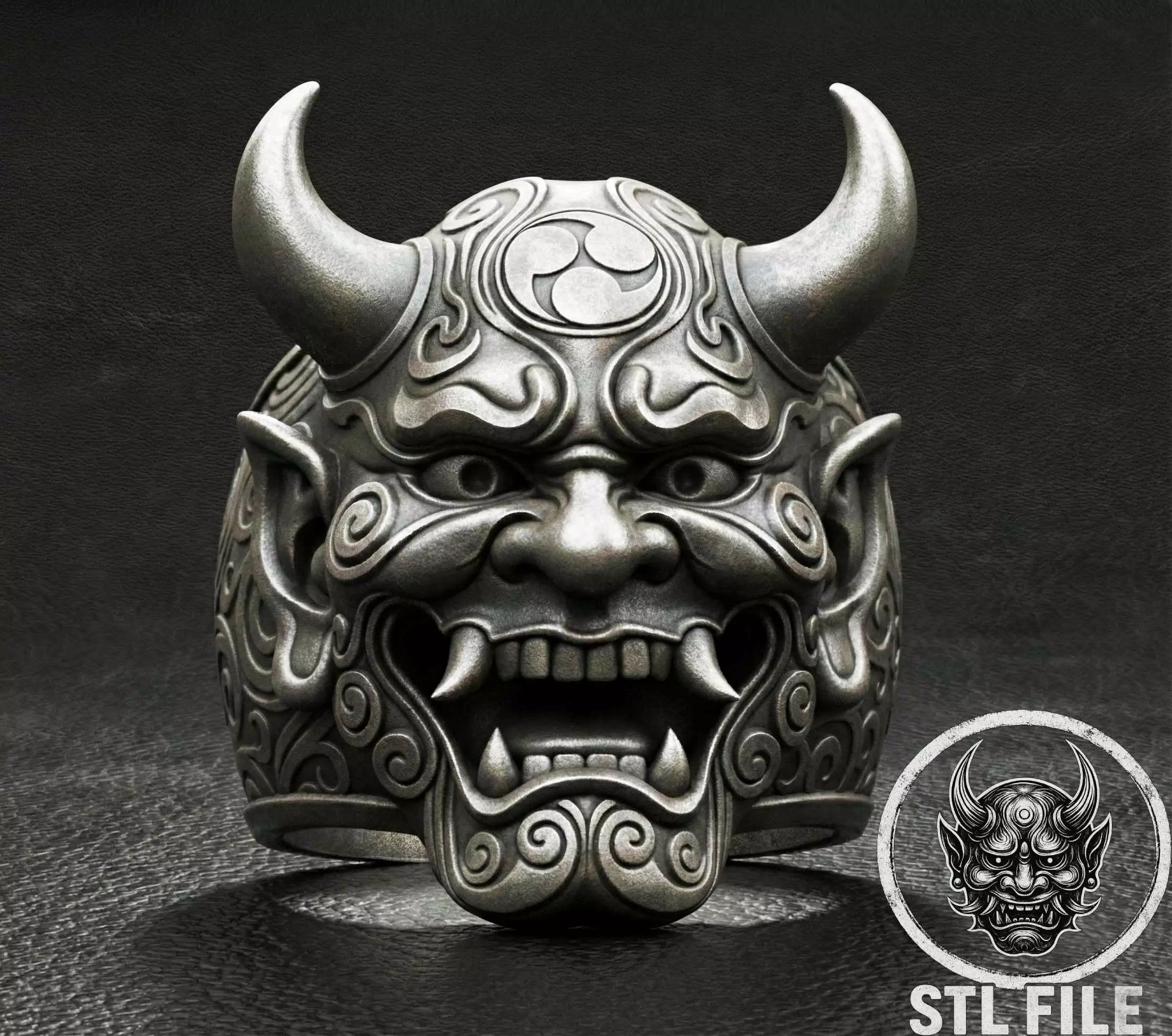 This STL file features a highly detailed ring inspired by the traditional Japanese Hannya mask — a symbol of rage, passion, and unstoppable energy. The design combines fierce demonic aesthetics with elegant ornamental curves, making this model perfect for fans of Japanese mythology, dark fantasy, and unique accessories.Features:High-detail 3D modelOptimized for 3D printing (SLA / DLP / FDM)Sharp facial geometry, expressive fangs and horns, and intricate engraved patternsSingle-piece STL fileSuitable for jewelry making, collectible items, and themed giftsPerfect for: Jewelry makers Cosplayers and fans of Japanese culture Collectors of unique accessories Sellers of 3D-printed productsThe ring is presented in three sizes 20,21,22,23,24.if you need a different size - please, we will always help you;)This design was made by the Maskitto team. All the rights belong to the creators, therefore, it is forbidden to resell nor share this design as a digital file.Recommended settings for printing:Layer Height 0.01- 0.05 mm