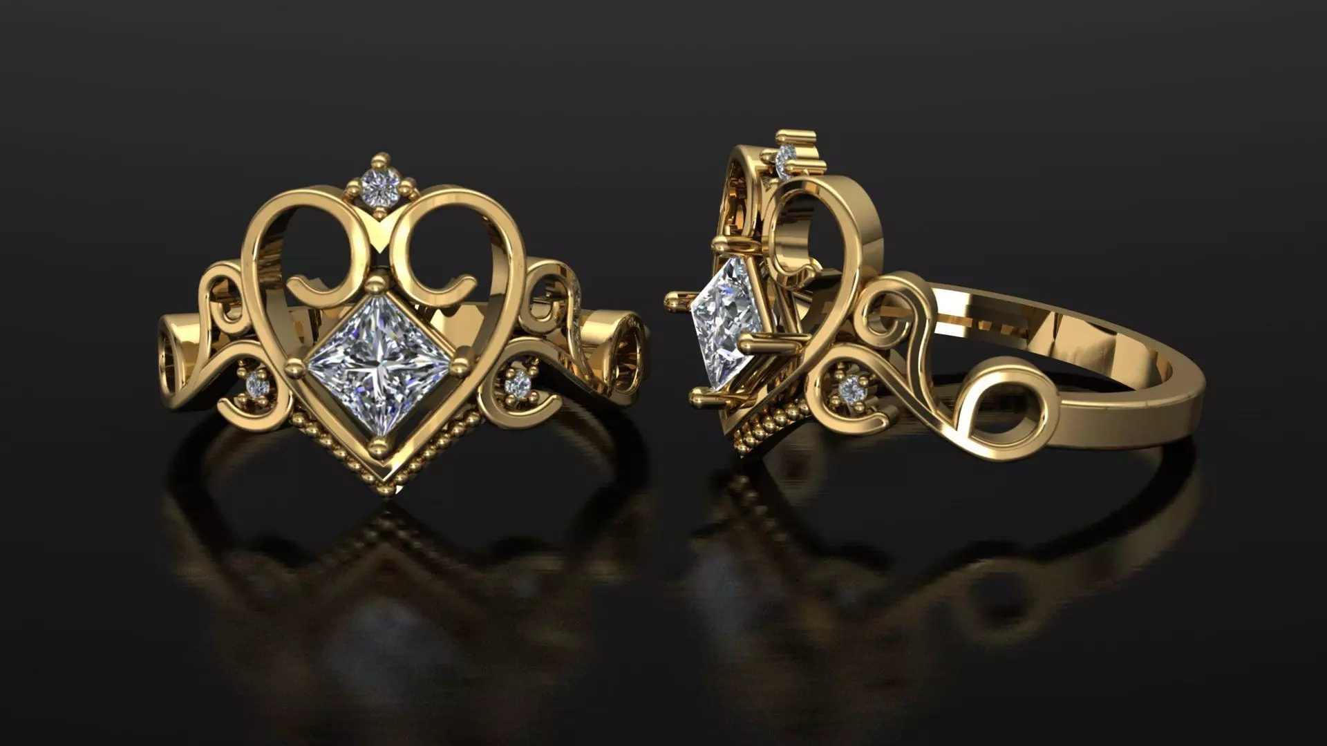 Heart Princess Ring;My model that I created from a heart model and designed with preneses cut diamonds and round diamonds.