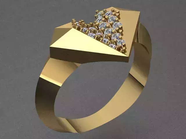 Heart Shaped Luxury Diamond Golden Ring 3D print model