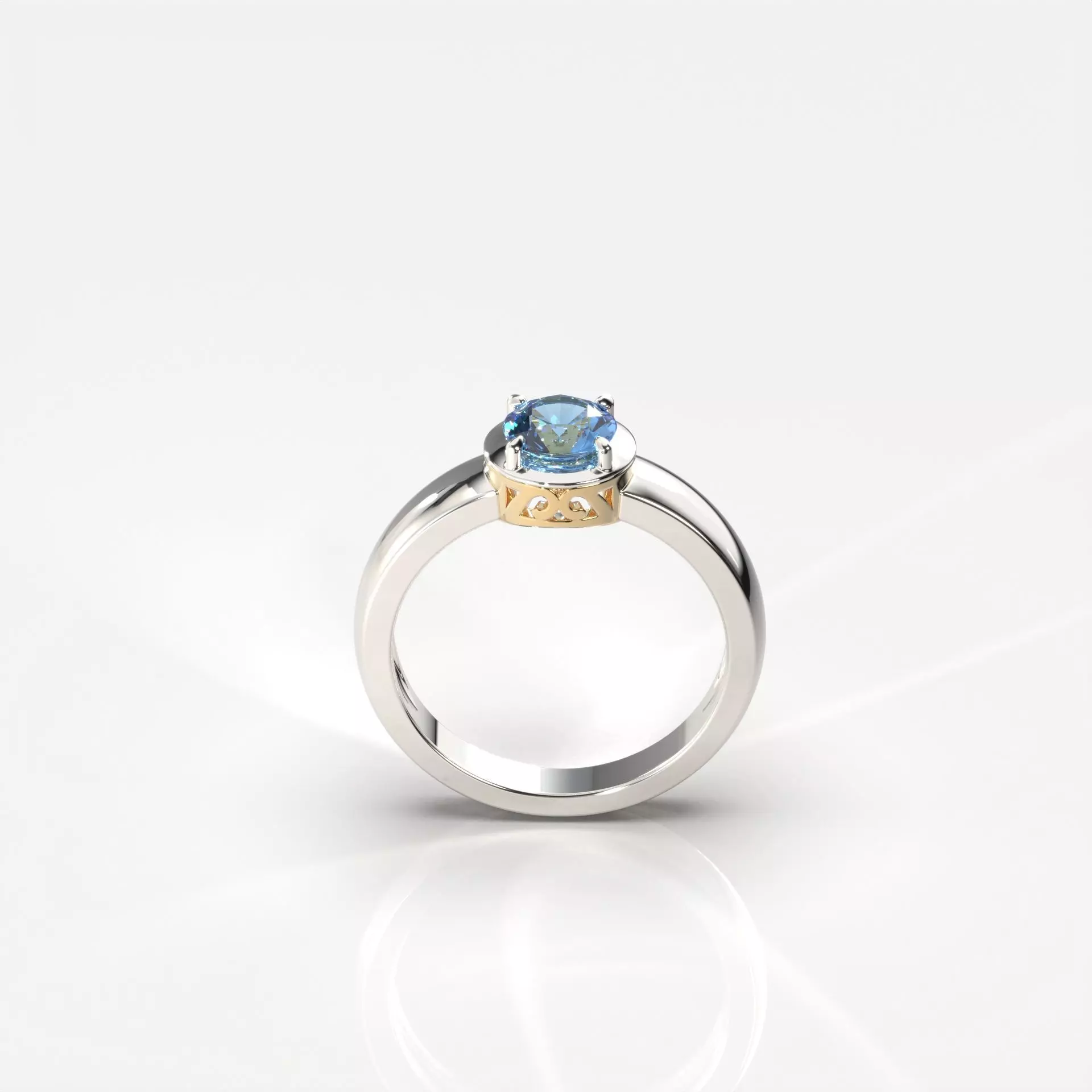High-Quality, 3D Print Ready CAD Model of a Bi-Metallic Solitaire Ring. Designed for use in [Rhino/Matrix]. Default Base Size: 17.5mm