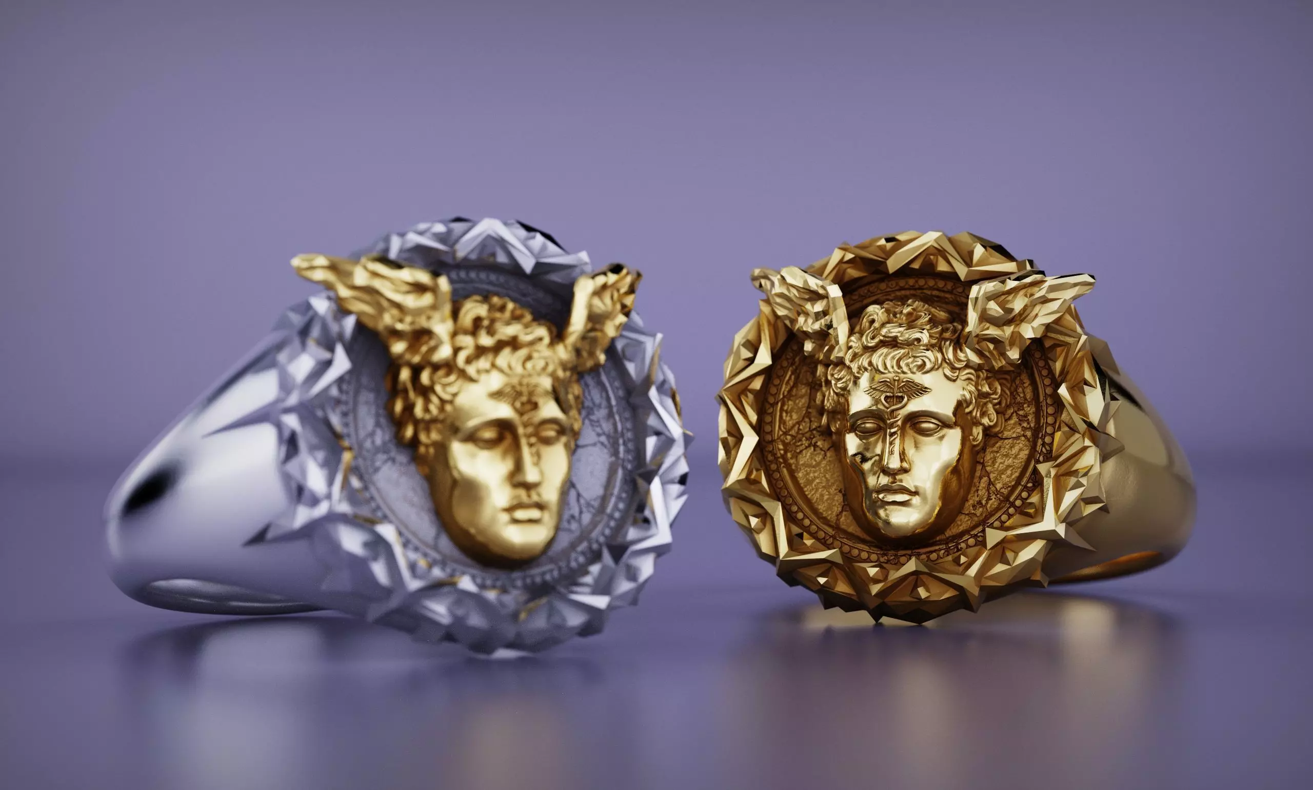 Hermes Signet Ring with comfortable fit and two versions merged and separated 3 parts including the head, border, and the ring so it can be cast into multiple materials and soldered.