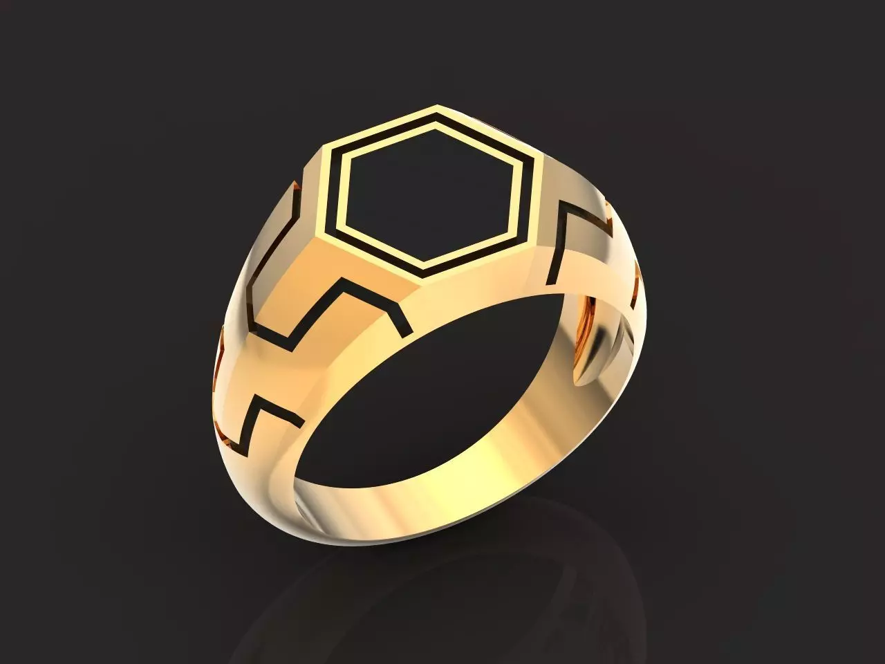 Hexagonal Black Onyx Man Ring 1130 3D print model
