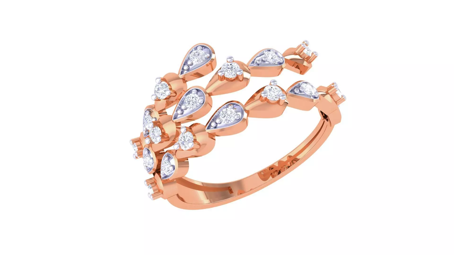 Leaves Vines High Jewelry Diamond Cocktail Ring renders 3dm stl 3D print model