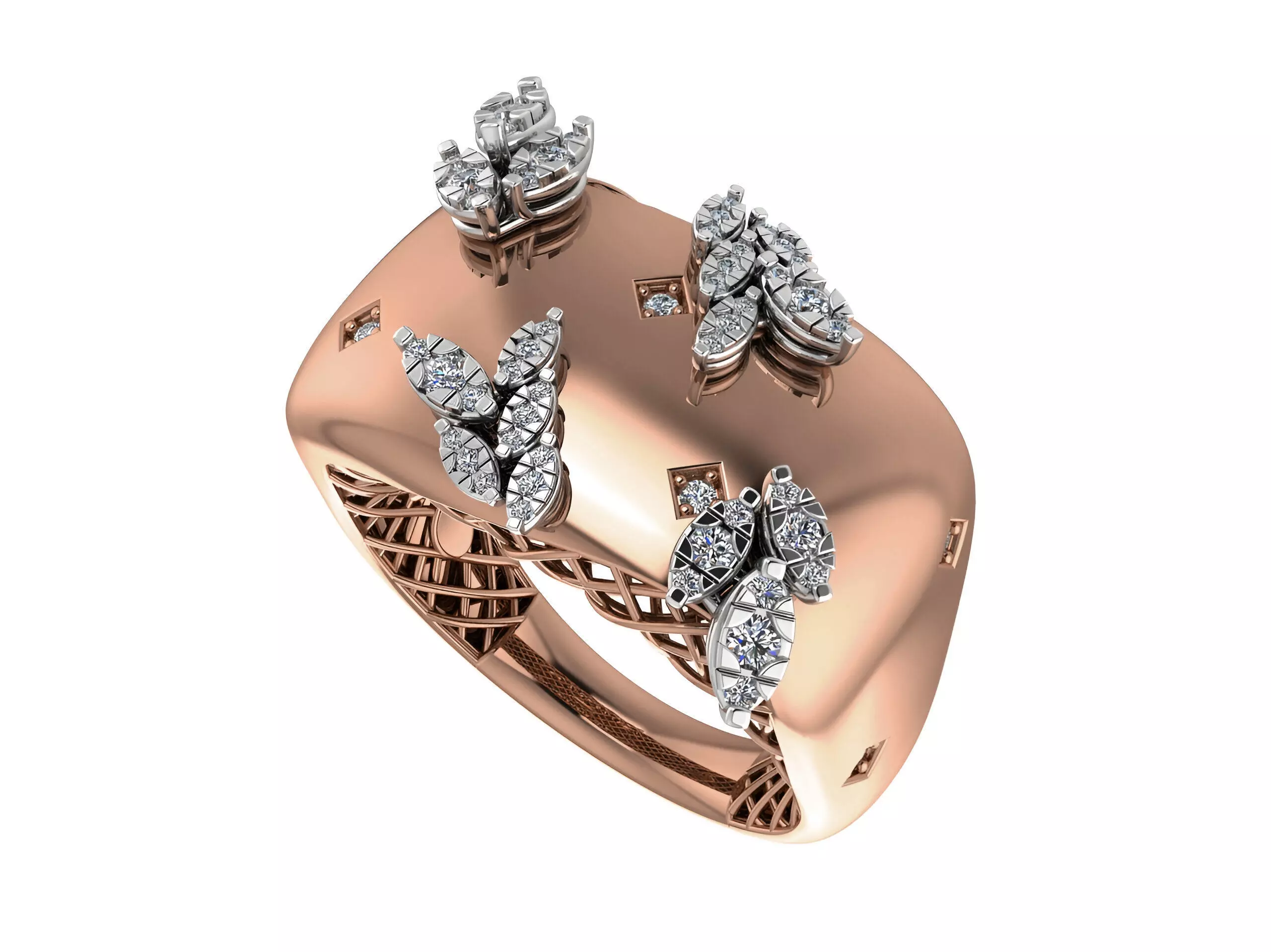 Leaves Butterfly High Jewelry Italian Cocktail Diamond Ring 3D print model