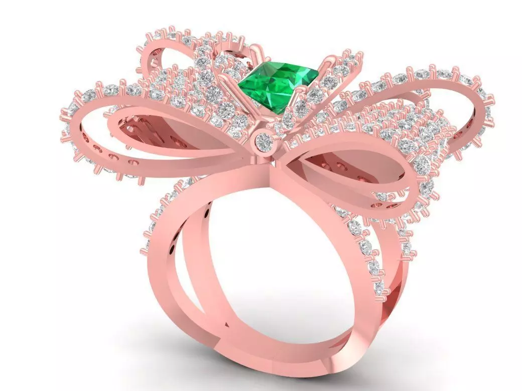 This Luxury Bow Gemstone Ring 3D model captures feminine elegance and luxury through its intricate ribbon-inspired design. The bow motif, encrusted with sparkling round-cut diamonds, gracefully wraps around a vivid center gemstone — symbolizing charm, confidence, and timeless beauty.