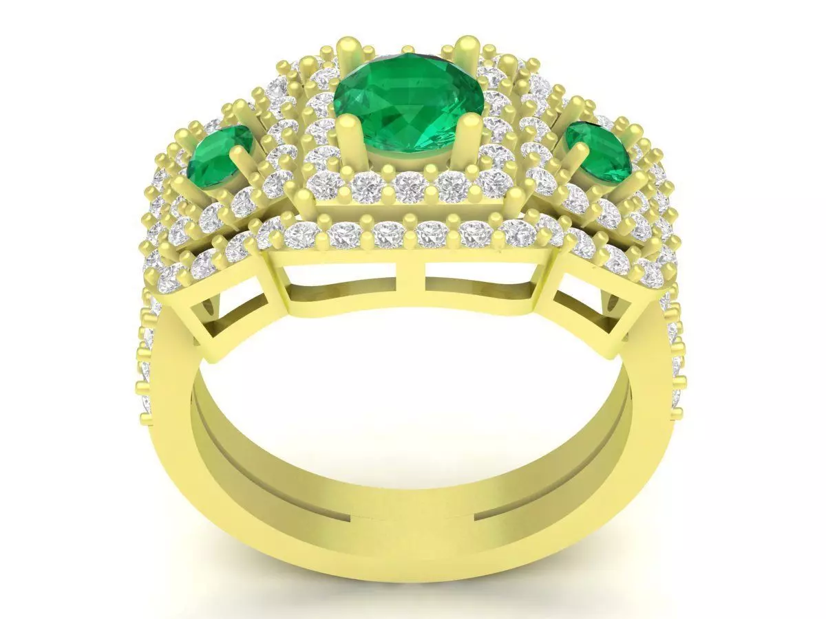 The ring is modeled with clean geometry, balanced thickness, and production-ready details, ensuring excellent casting performance and a perfect finish during polishing. The side gallery showcases an open framework that enhances light reflection through the stones while maintaining structural strength. All measurements, gemstone sizes, and technical specifications are clearly displayed in the preview images to assist jewelers in manufacturing, resizing, and material estimation.