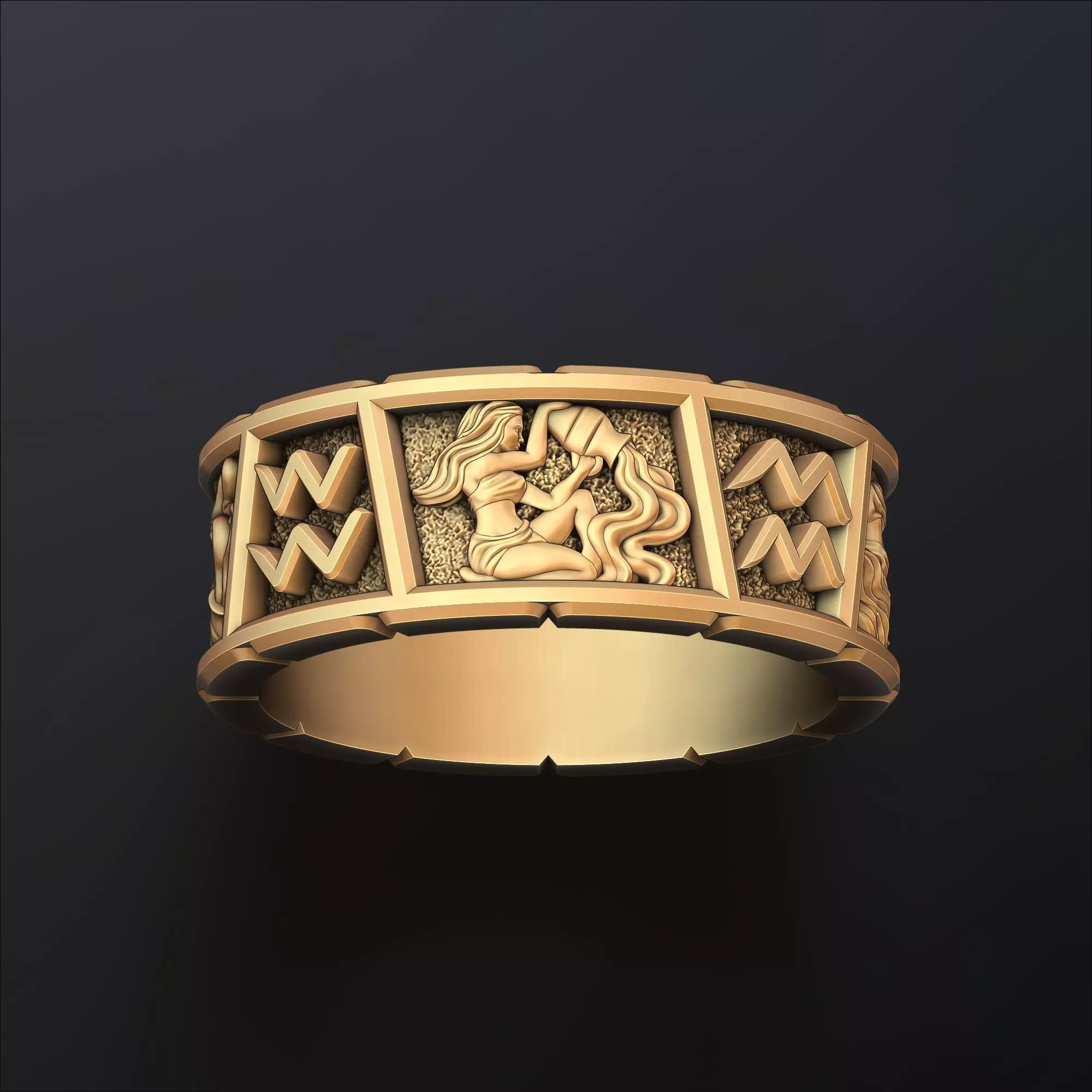 418.Horoscope Aquarius Ring v2 3D Print Model