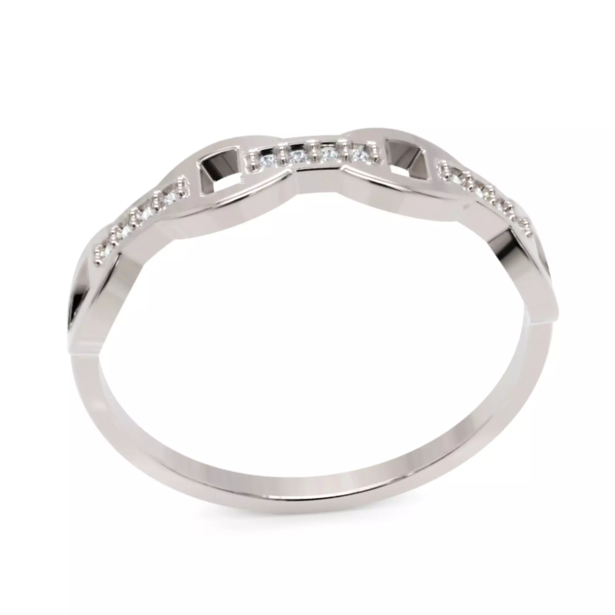 A sleek and refined infinity link ring crafted with modern geometric curves and precise diamond alignment.The flowing linked pattern represents continuity and elegance, making it ideal for fine jewellery collections and daily wear lines.