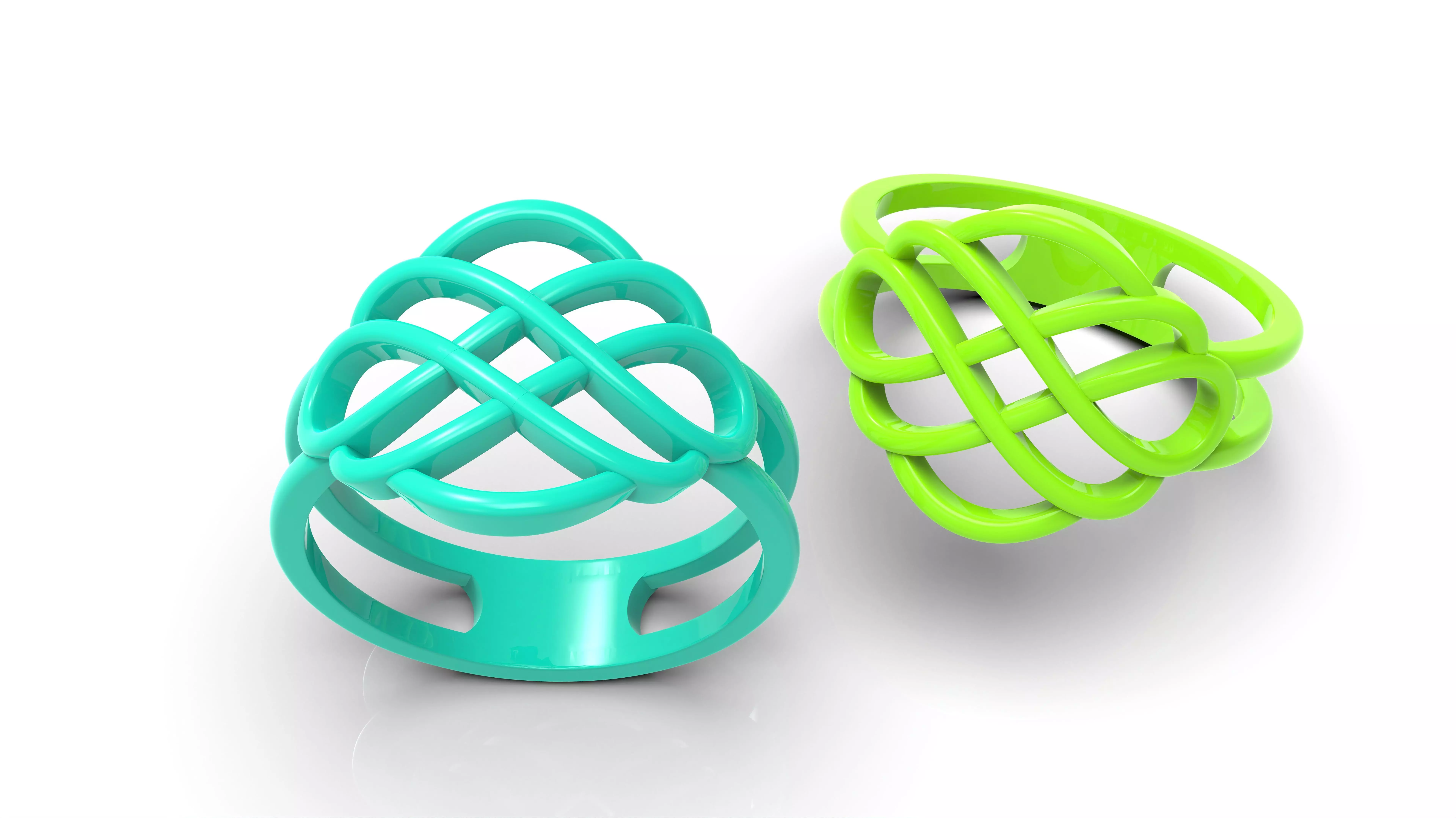This is a contemporary open-structure ring featuring an interwoven infinity-inspired design across the top. The ring is available as print-ready STL files in sizes 3 through 13.