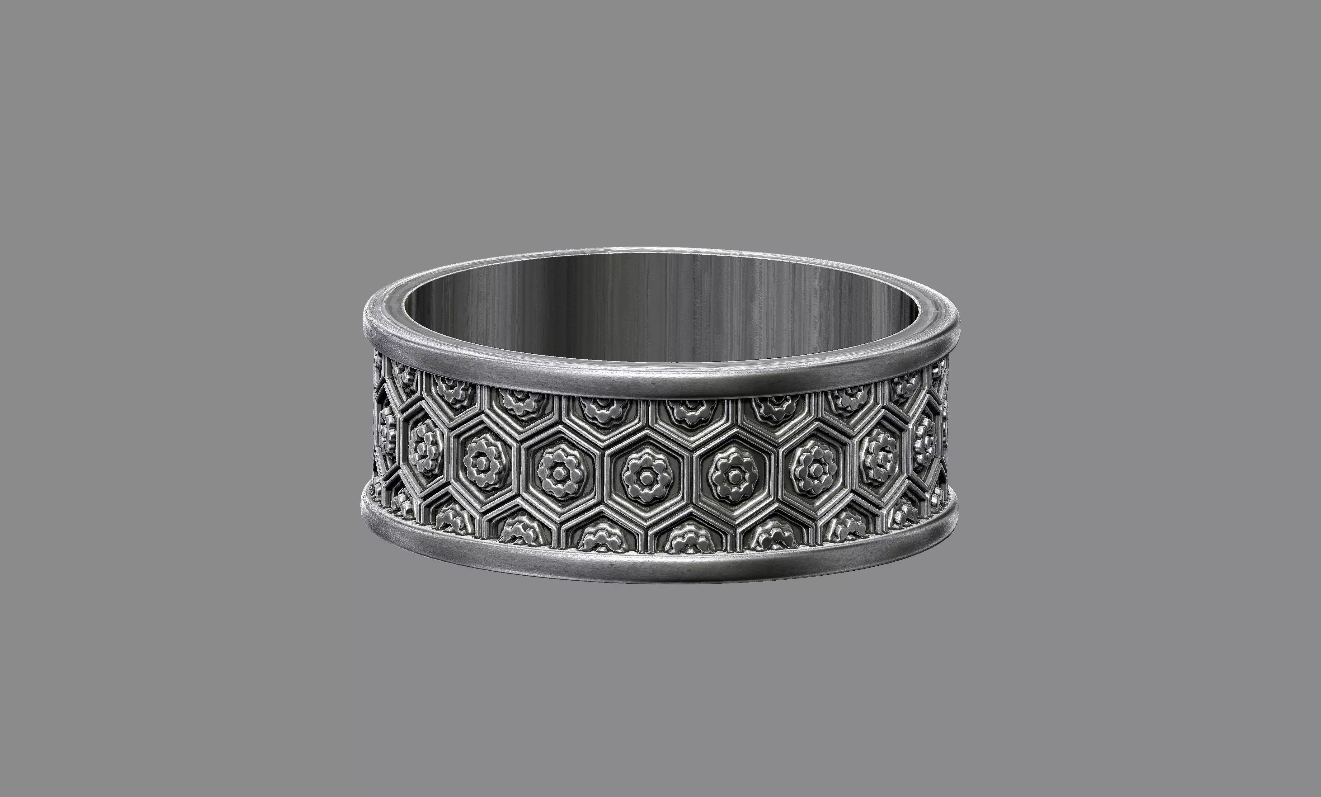 A refined band ring inspired by traditional Japanese floral motifs, featuring an elegant engraved pattern that flows seamlessly around the ring. The balanced design reflects harmony, beauty, and craftsmanship, blending cultural influence with timeless style. Designed for high-quality 3D printing and suitable for metal casting, this ring is ideal for wedding bands, promise rings, or sophisticated Asian-inspired jewellery designs.