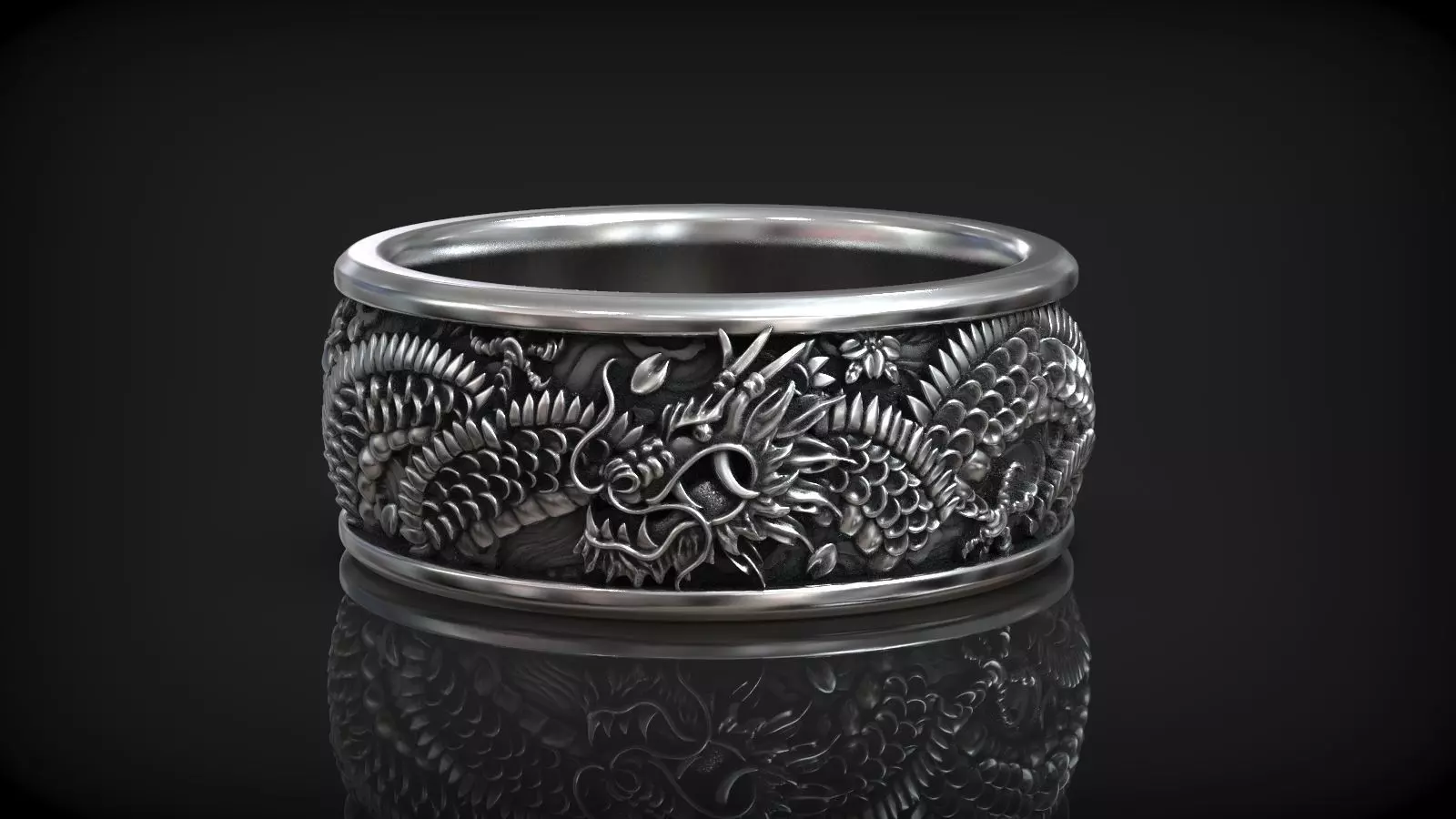 That's an exquisite 3D ring model that seamlessly marries the mystique of a dragon with the timeless elegance of Japanese design. Engraved along the entire length of the ring is a majestic dragon, capturing the essence of Japanese folklore and symbolism.The ring itself serves as a canvas for this breathtaking display, featuring an array of traditional Japanese motifs engraved with precision. These intricate patterns, inspired by nature and tradition, add depth and cultural significance to the overall design.Wearing this ring is an immersive experience, an ode to the rich tapestry of Japanese folklore and design. It invites you to carry the symbolic power of the dragon and the grace of traditional Japanese ornamentation with you, wherever your journey takes you. Immerse yourself in the allure of this unique fusion of mythical charm and intricate craftsmanship.