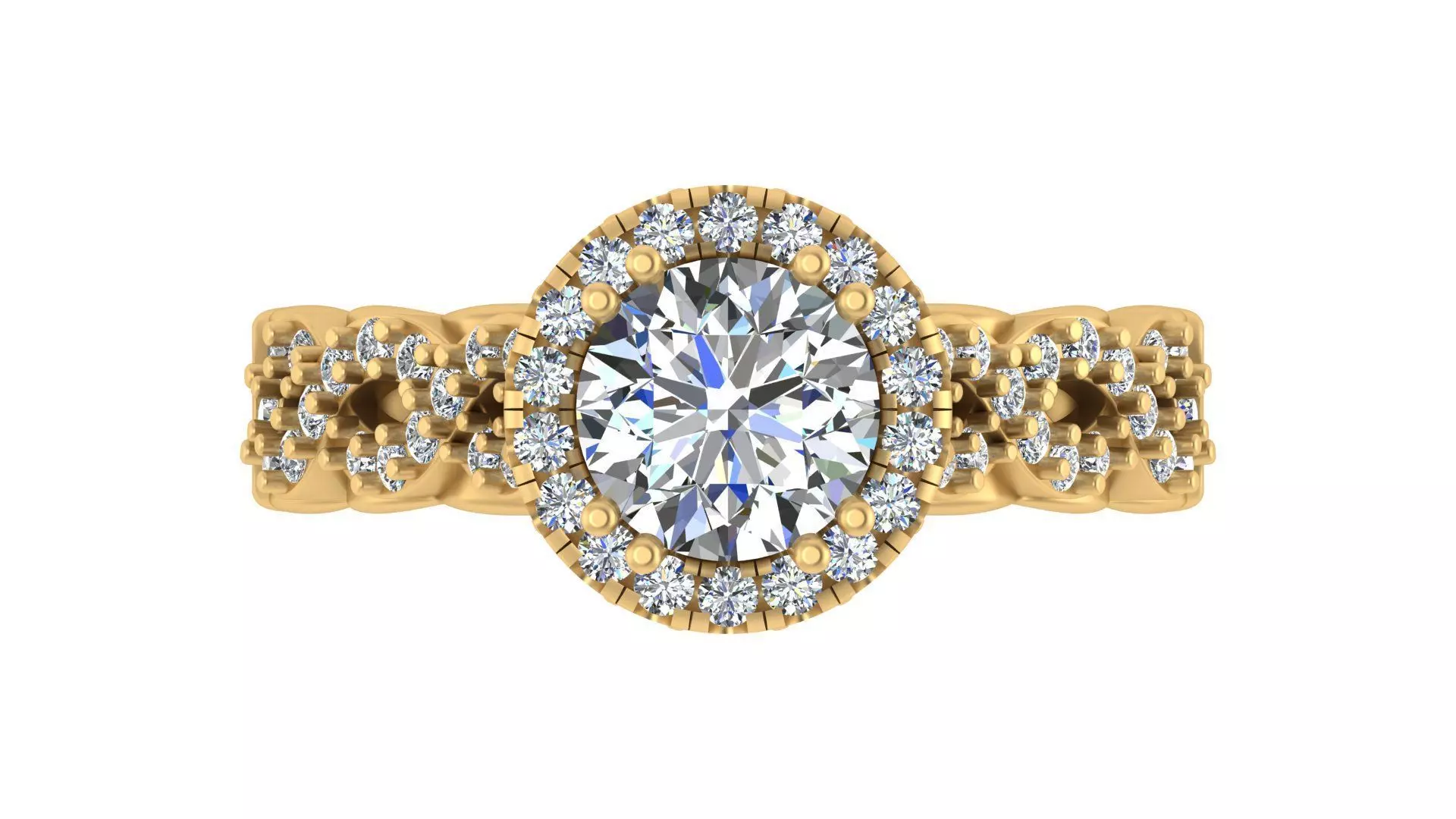 The Royal Halo Round-Cut Diamond Engagement Ring is a stunning blend of vintage charm and contemporary elegance. This exquisitely crafted ring features a brilliant round-cut center stone encircled by a dazzling halo of smaller diamonds, enhancing its brilliance and creating a regal aura.