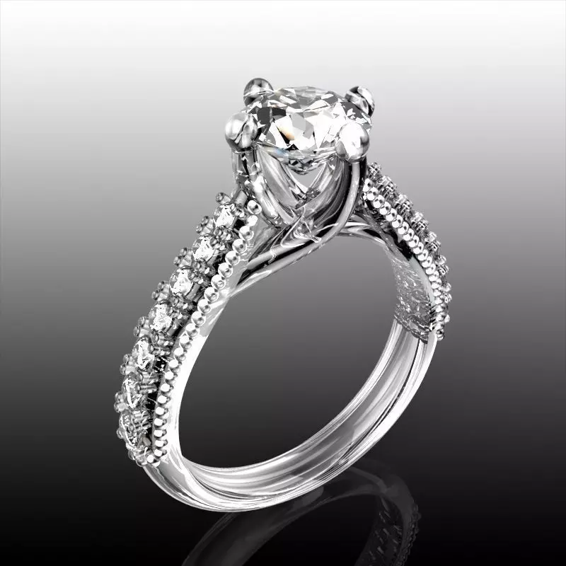Ring size US 6 .White Gold 18k. estimate weight 5.5 gram.Center Diamond 6.0 mm (0.80ct.).Small Diamonds sizes and counts.2 , Diamond , Round , Diamond , X=1.52 , Y=1.52 , Z=.94 , .01ct. (total .03ct.)2 , Diamond , Round , Diamond , X=1.62 , Y=1.62 , Z=1.00 , .02ct. (total .03ct.)2 , Diamond , Round , Diamond , X=1.73 , Y=1.73 , Z=1.07 , .02ct. (total .04ct.)2 , Diamond , Round , Diamond , X=1.85 , Y=1.85 , Z=1.14 , .02ct. (total .05ct.)2 , Diamond , Round , Diamond , X=1.97 , Y=1.97 , Z=1.21 , .03ct. (total .06ct.)2 , Diamond , Round , Diamond , X=2.10 , Y=2.10 , Z=1.29 , .03ct. (total .07ct.)2 , Diamond , Round , Diamond , X=2.23 , Y=2.23 , Z=1.37 , .04ct. (total .08ct.)