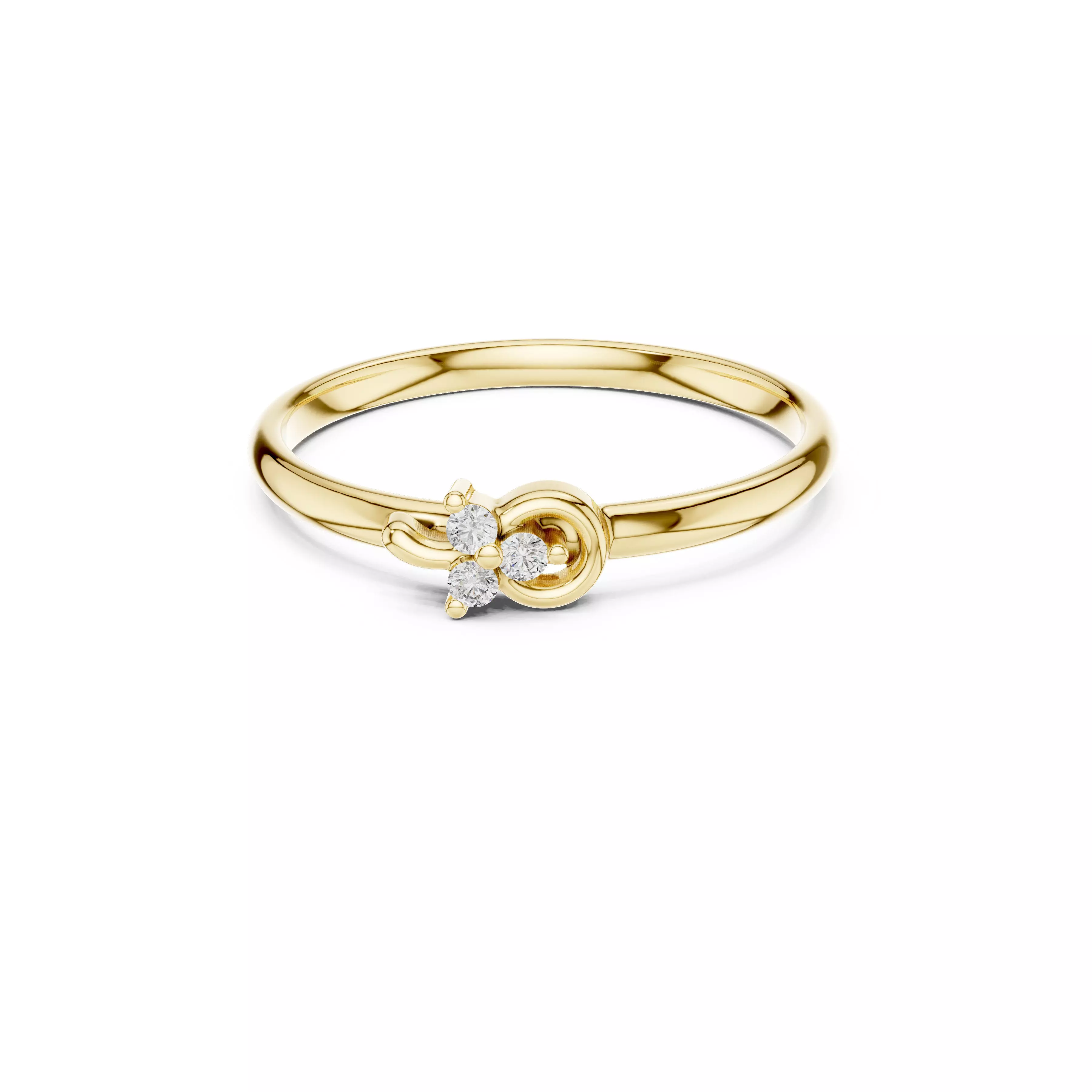 Refined swirl diamond trio ring designed with a graceful spiral motif, combining fluid elegance with minimal luxury for everyday wear.
