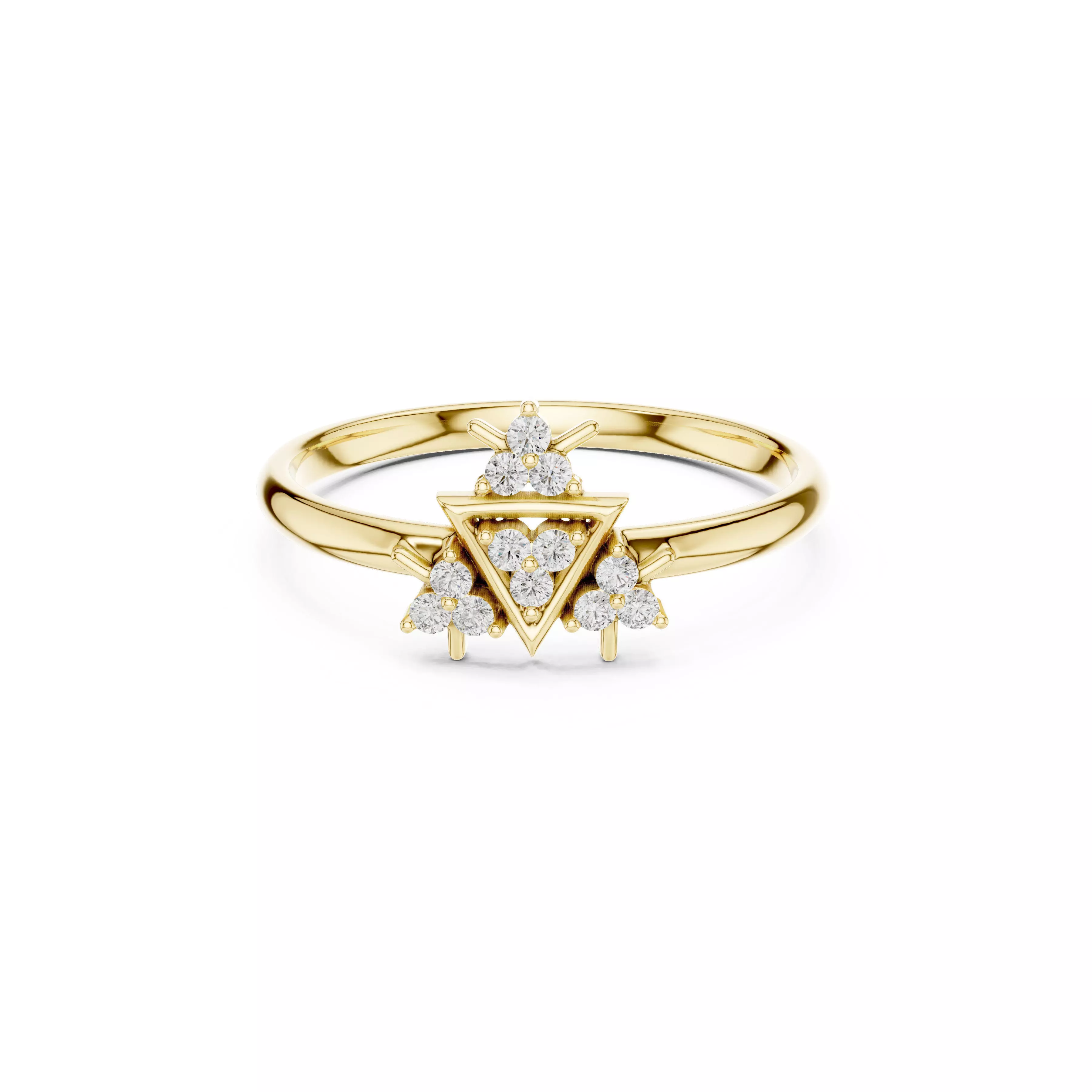 Geometric Triangle Cluster Diamond Ring – Modern Minimal Gold Statement