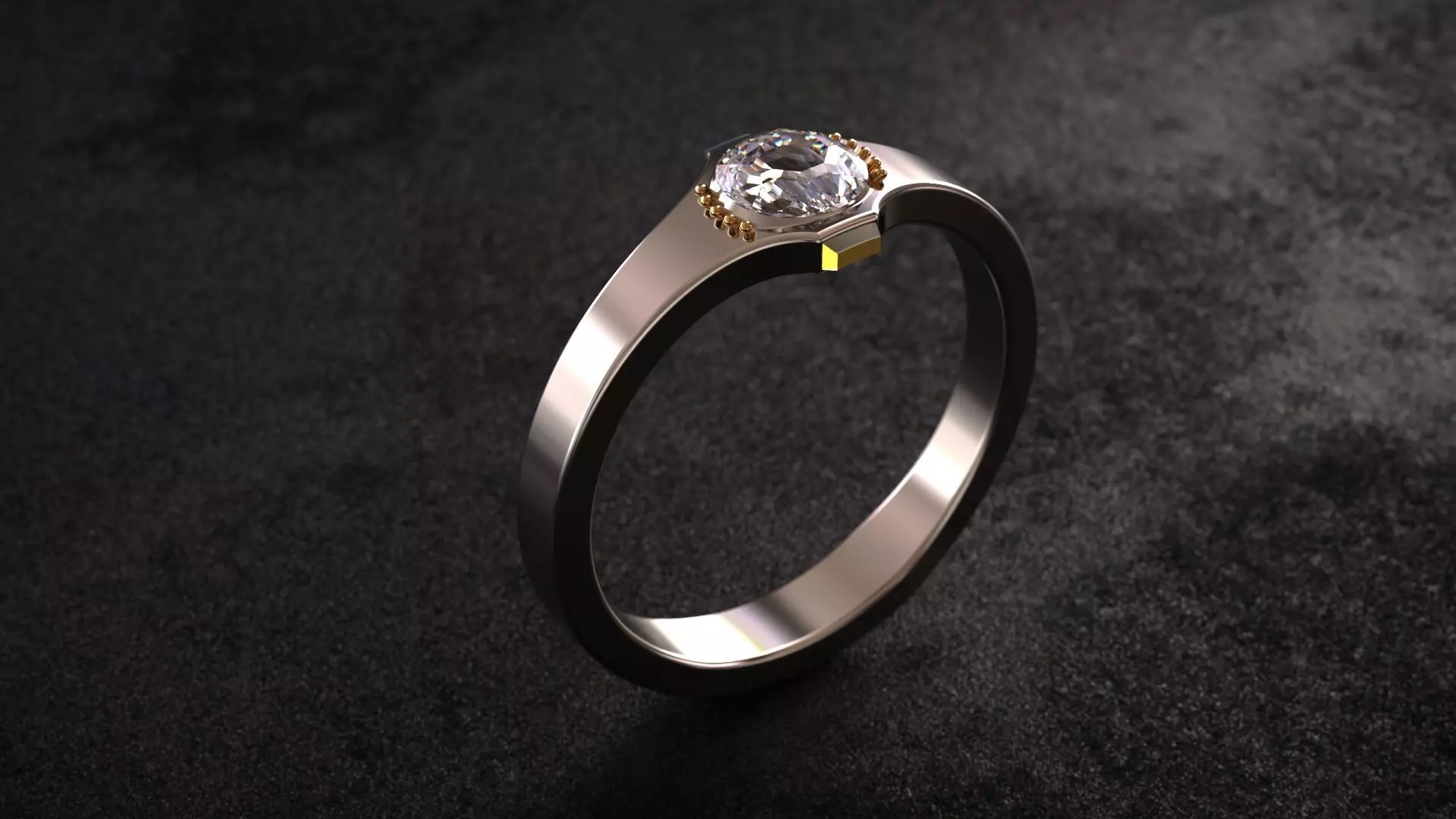 3D model features a minimalist geometric design enriched with crystal elements and gemstone. The piece combines modern elegance with clean architectural lines, making it ideal for jewelry visualisations, product animations. rendering .fashion project. The model has been crafted for optimal topology.