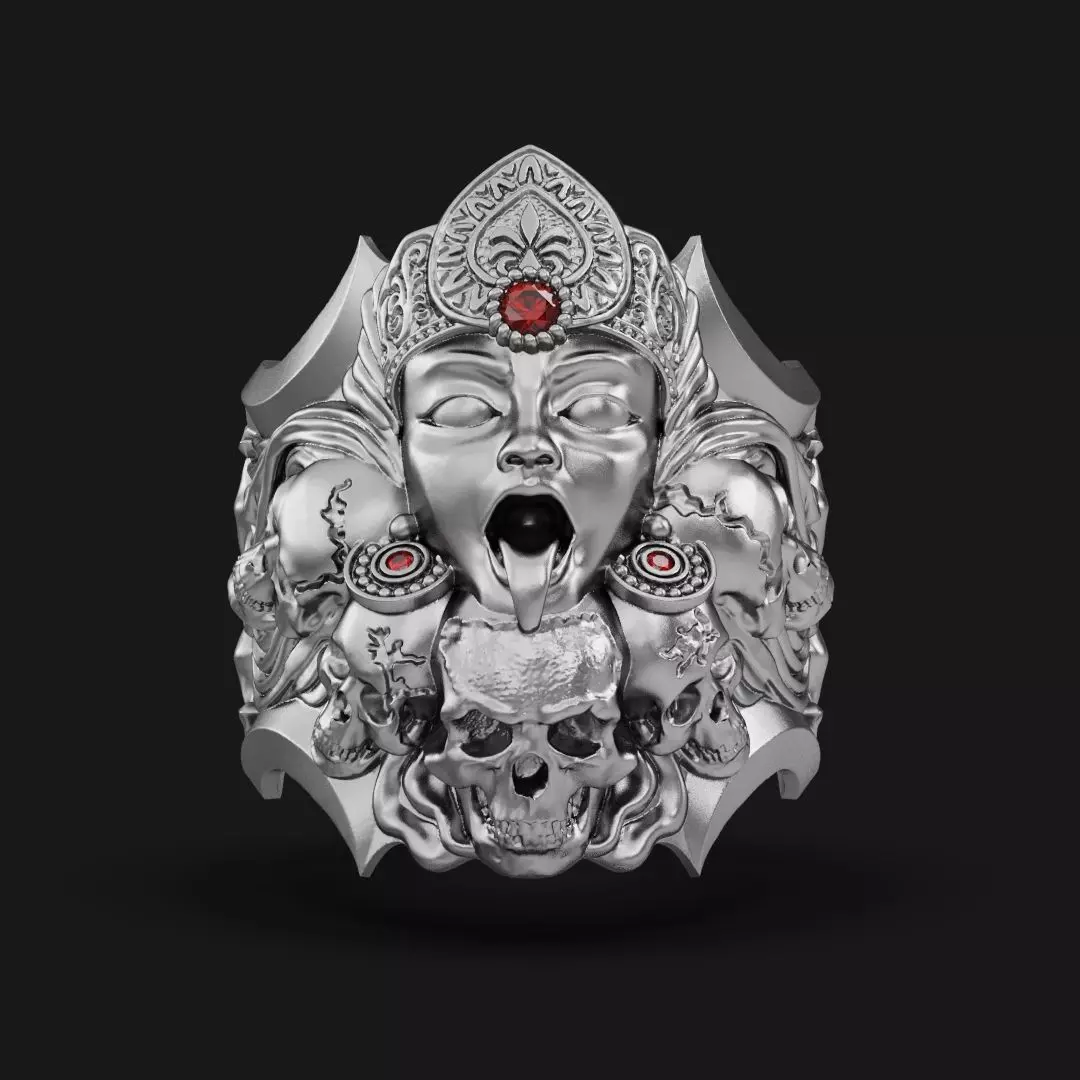 Kali goddess ring with skulls 3D print model