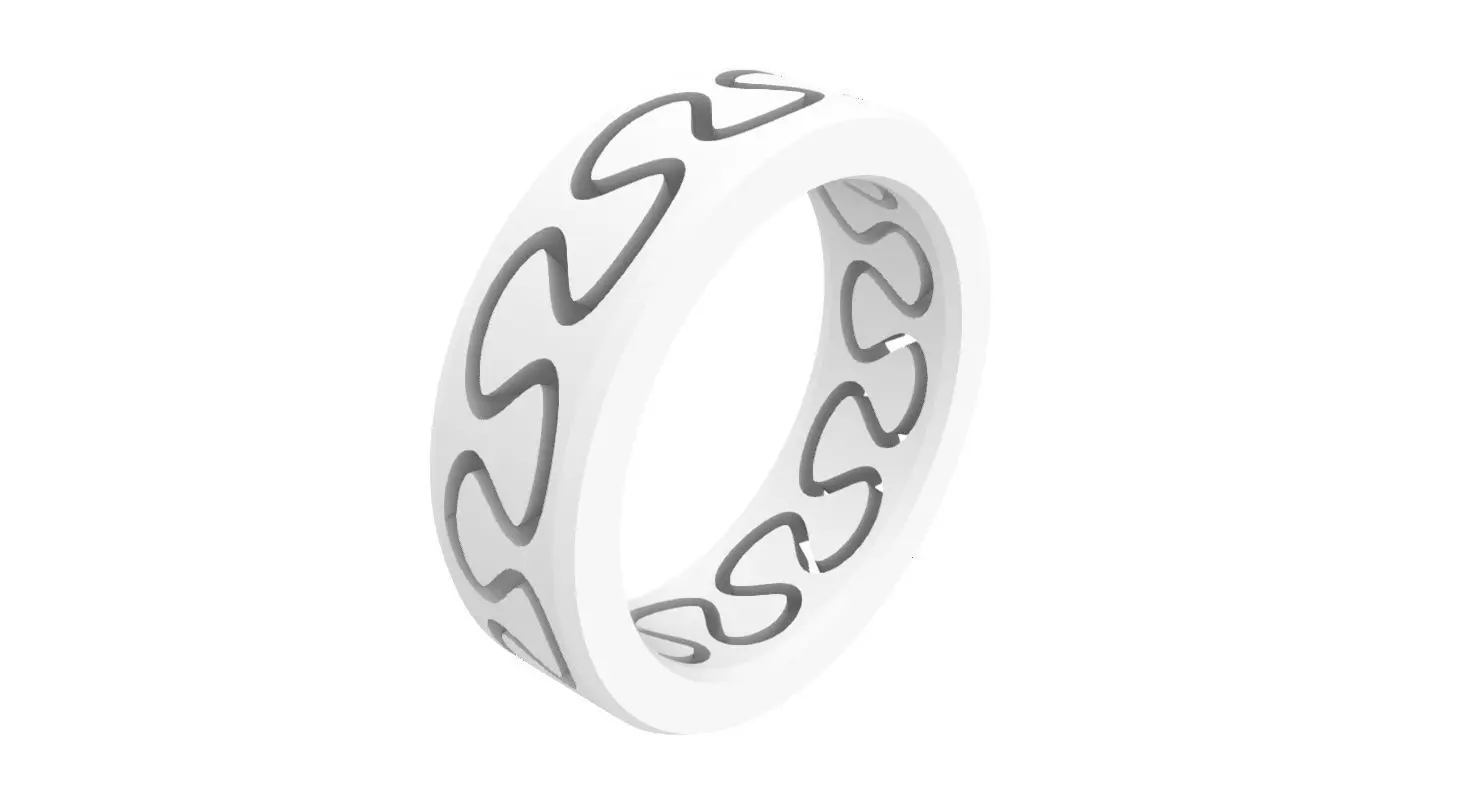 The model has ring size 56, is 6.6mm wide and 2.5mm thick. You can scale the ring to your ring size. The narrowest gap between the moving parts is 0.6mm. The thinnest part of the ring is the neck of the pattern. There the wall is 0.9mm thick on the outside and 0.7mm on the inside. Please check if this fits the requirements of your chosen manufacturing method. As a trained goldsmith with years of experience in 3D design, I work with great care, but if something still doesn't fit, please feel free to contact me.