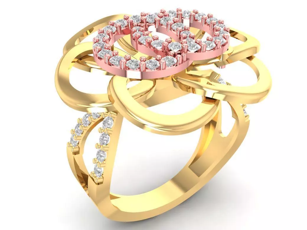 This 3D jewelry model showcases a luxury floral cluster diamond ring for women, designed with multiple intersecting circular petals that form a radiant flower motif. The upper section features a fully pavé-set surface with brilliant-cut diamonds, giving the piece an elegant sparkle from every angle. The structure is strong yet graceful, making it suitable for fine jewelry production or premium fashion collections.