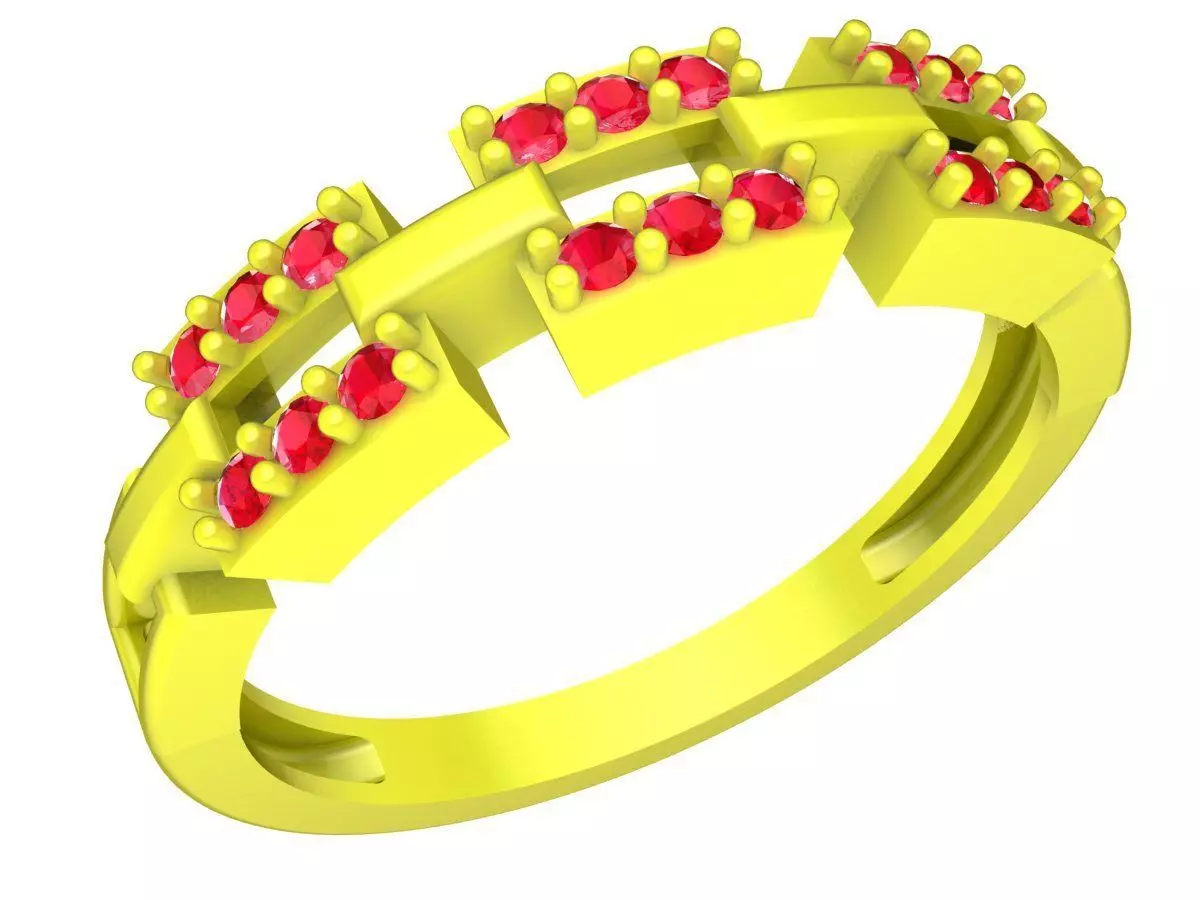This 3D jewelry model features a luxury multi row pave gemstone band ring designed for women, offering a modern and structured aesthetic. The ring is composed of multiple horizontal rows of round gemstones arranged in a clean and balanced layout, creating strong visual rhythm and refined brilliance.