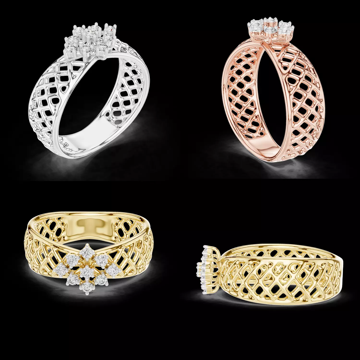 Important PointsWide band design with strong visual presenceDetailed lattice (jaali) pattern for premium lookCluster diamond top for maximum sparkleOpen structure for better light performanceBalanced weight and thickness for durabilitySmooth inner band for comfortable wearClean and production-ready CAD geometryEasy customization in 3DM format