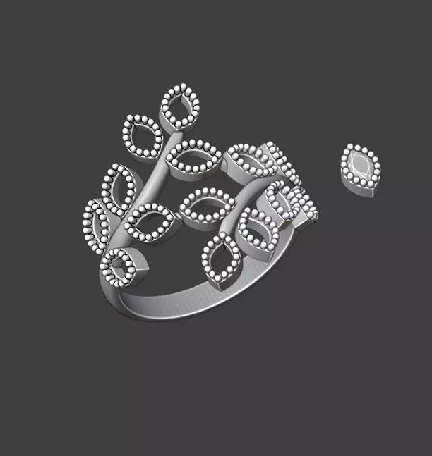 Design FeaturesDesign: The ring features a leaf or branch pattern, with multiple positions for marquise-shaped stones.