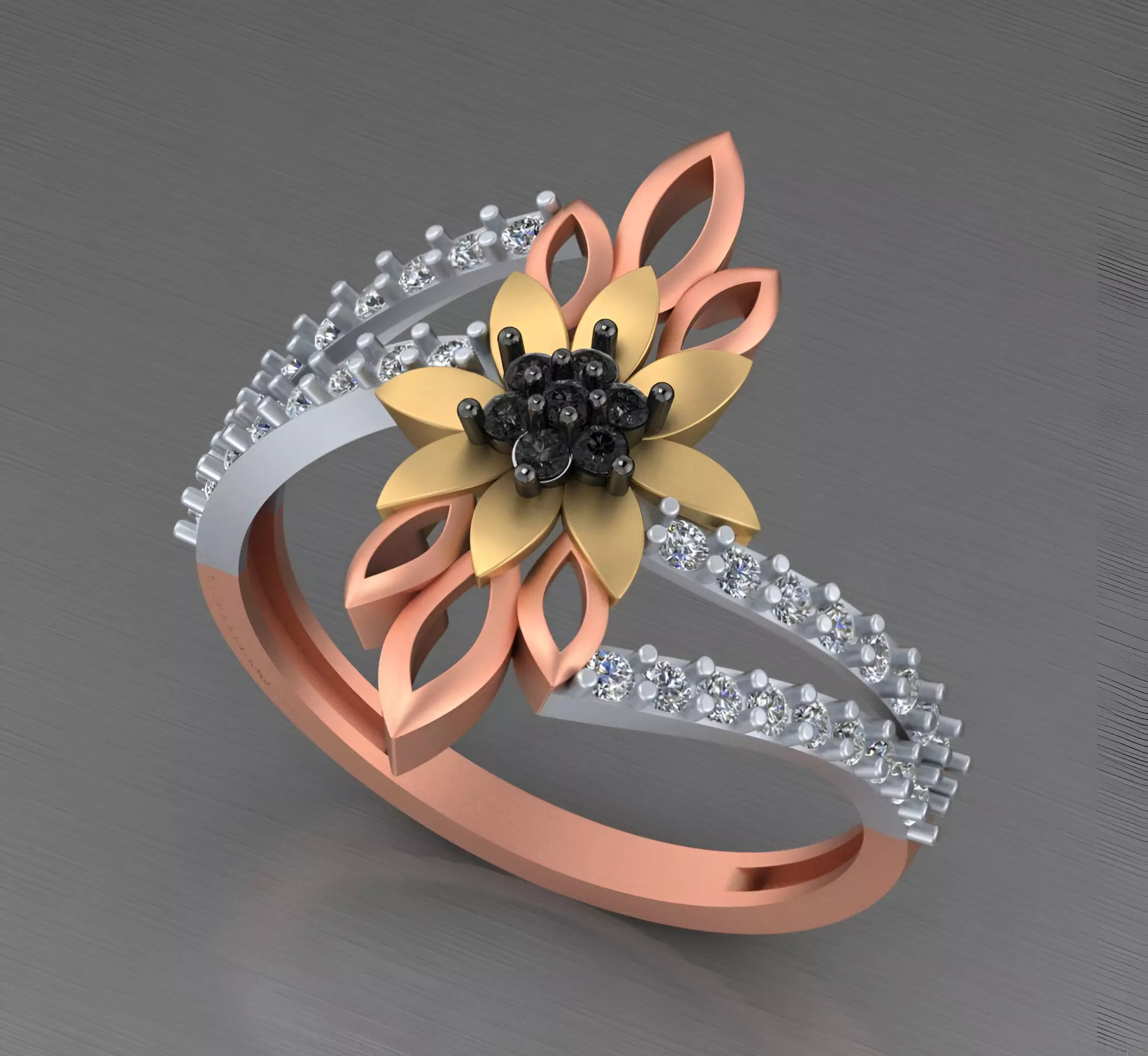 Flower Light weight italian diamond ring 3dm stl renders details 3D print model