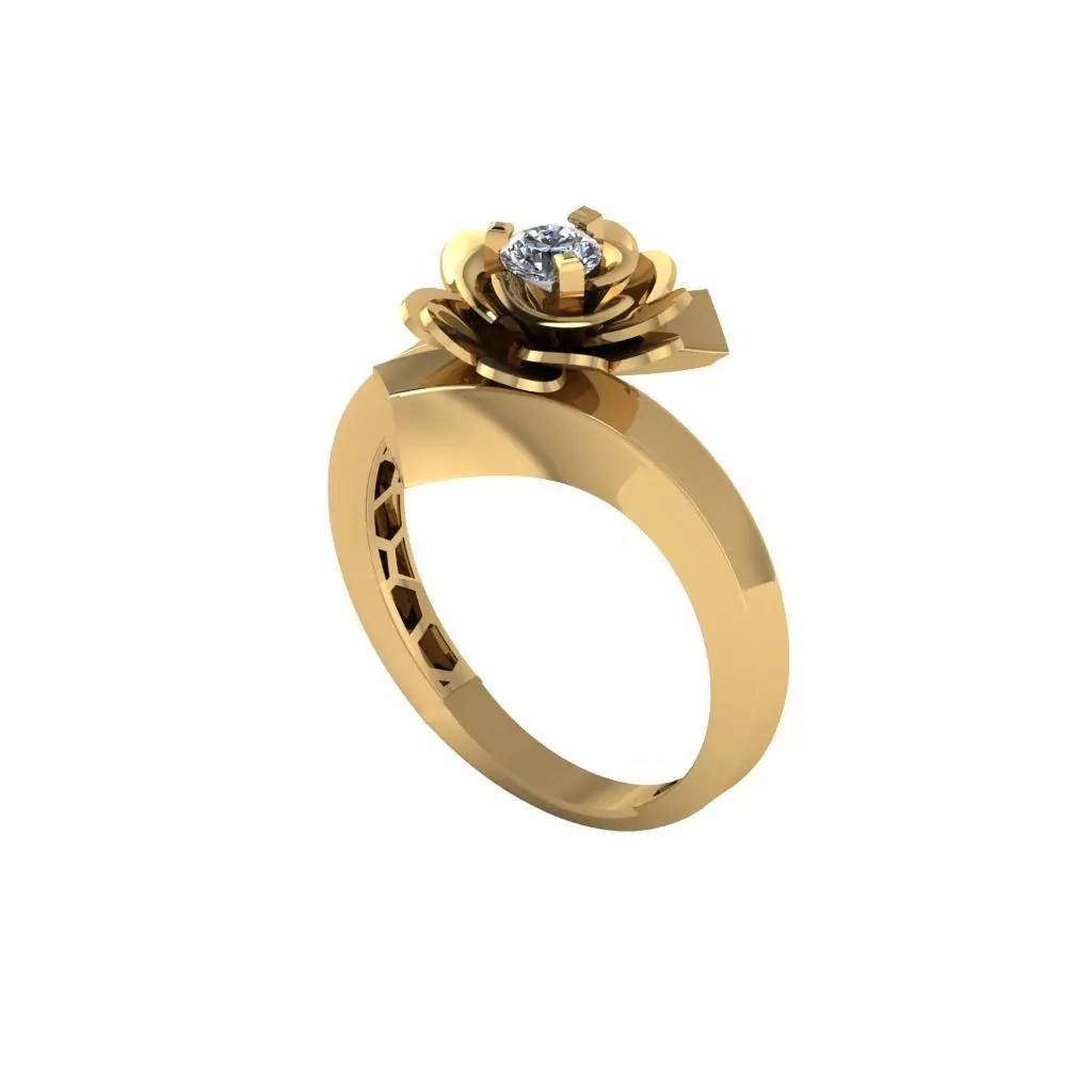 This is a high-quality fusion-style gold ring 3D model, designed for professional jewelry manufacturing, 3D printing, and rendering. It features a unique, modern design with stone settings and precise geometry.