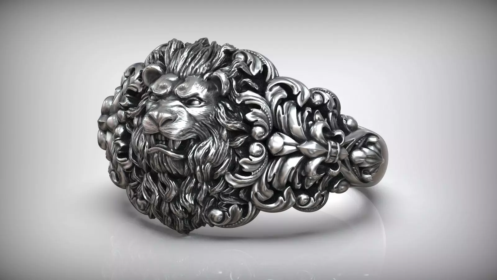 Fleur De Lis Lion Head Baroque Pattern Royal Lily Ring