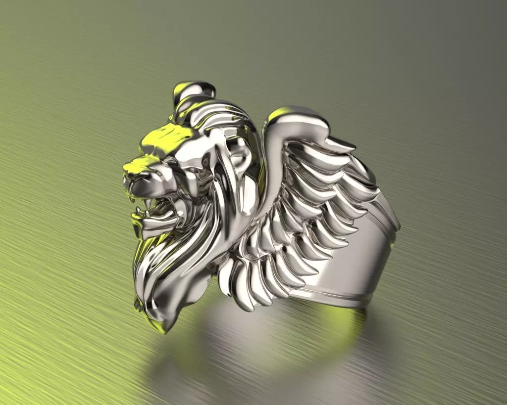 Lion ring(size 19.5mm). 25.5mm in lenght from the top of the lions wings to the bottom of the Lions beard...Weight-silver-45.66 gr..gold 14k-61.45gr..gold18k-67.98gr...Please contact me if you have questions or need assistance with the models. If you need another size - contact me. Designed for 3d Printing.