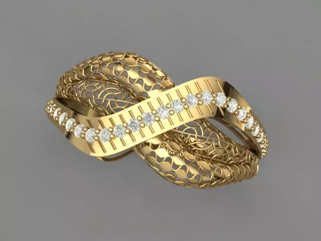 This fusion ring is an innovative idea in the jewelry design market that showcases a combination of intricate lace structures and sparkling jewels.The open and light texture of this model not only reduces the weight and increases the comfort of use, but also allows light to spread among the delicate golden grids. The combination of round stones in the center of this ring creates an impression of balance and harmony, making it a unique choice for modern jewelry lovers.In the jewelry market, fusion designs are growing rapidly and customers are looking for unique and different models that go beyond the classic styles. This design can be considered as a new and special idea from brands and jewelers who intend to present distinctive and innovative products.If you are looking to enter the new trends of the market, this design file will be a great option to implement a different and eye-catching work.