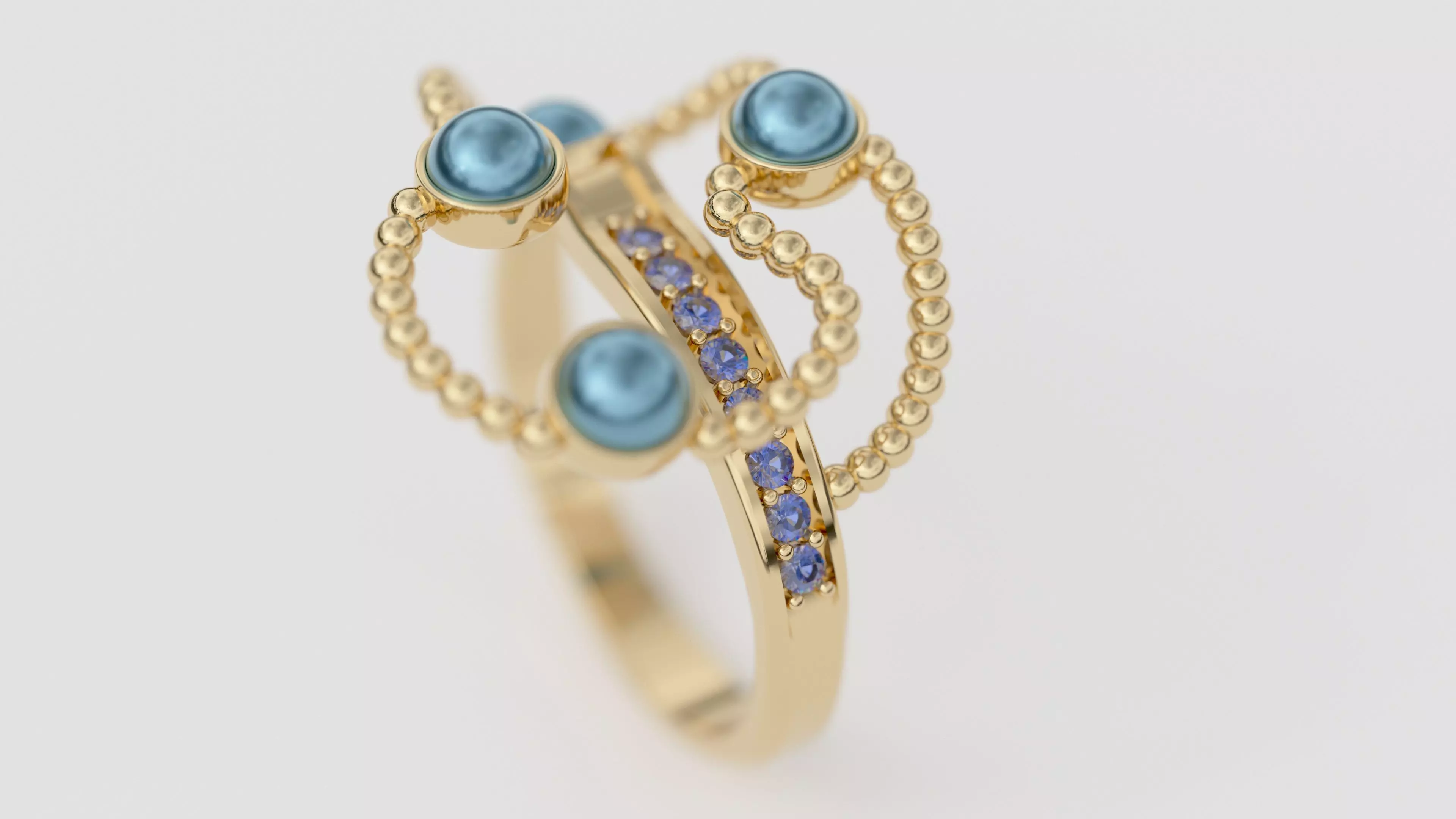 High-Fidelity Detail: Meticulously modeled to capture the unique luster of the blue pearls, the brilliance of the sapphires, and the intricate texture of the beaded gold elements.