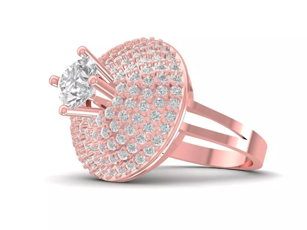 This luxury multi-layer pave round halo ring is designed for women who appreciate bold sparkle and sophisticated craftsmanship. The model features a striking round center stone elevated by a refined four-prong setting, surrounded by multiple concentric pave layers that create an impressive dome-shaped halo. Each small stone is positioned with precise spacing to achieve maximum brilliance, giving the ring a radiant, sunburst-like effect from every viewing angle.