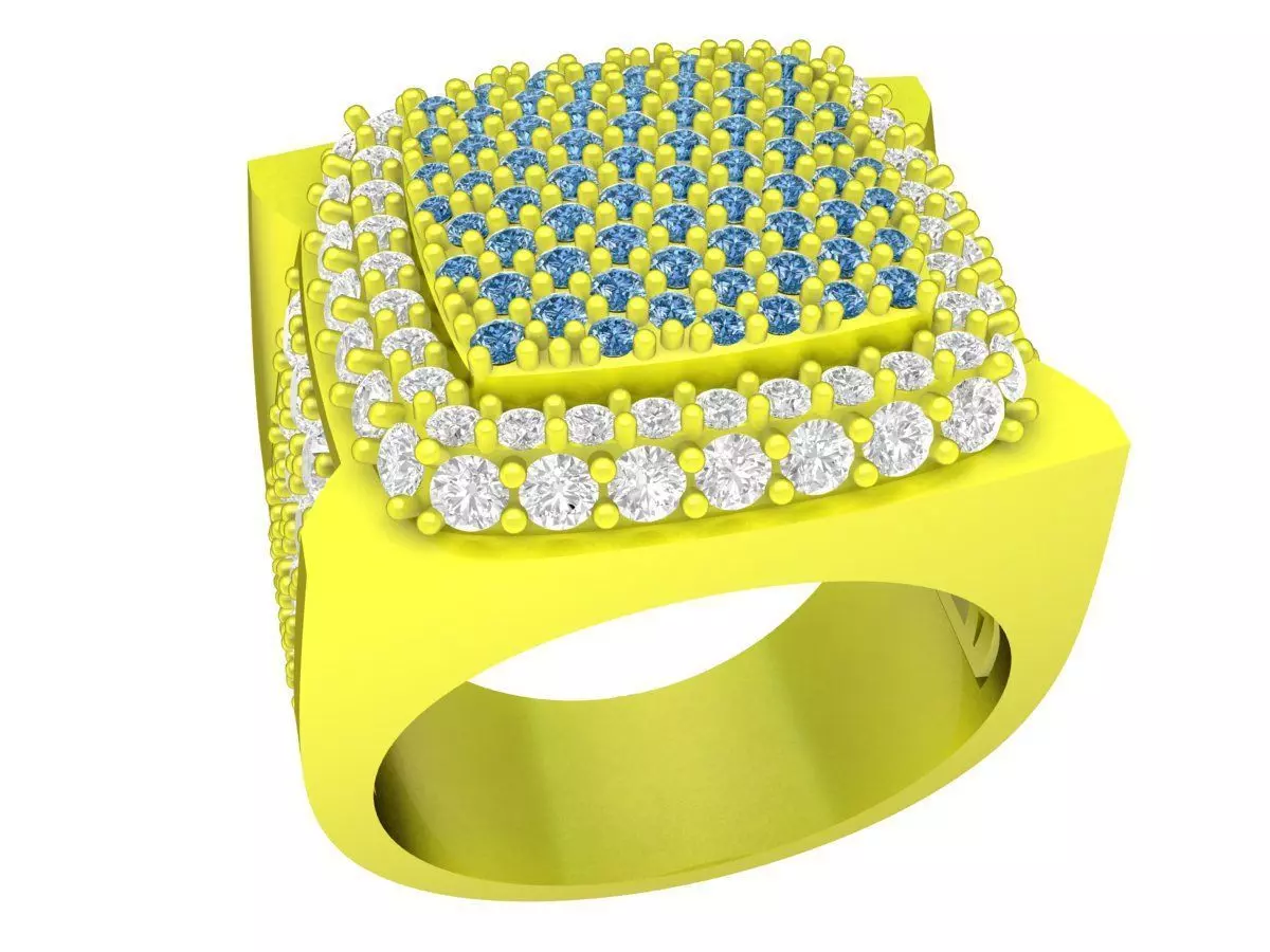 This 3D jewelry model showcases a bold square-top men’s ring featuring a full pavé gemstone layout across the surface and surrounding edges. The multi-row pavé arrangement creates a strong, luxurious appearance commonly used in high-end men’s rings, hip hop jewelry, and statement fashion pieces.